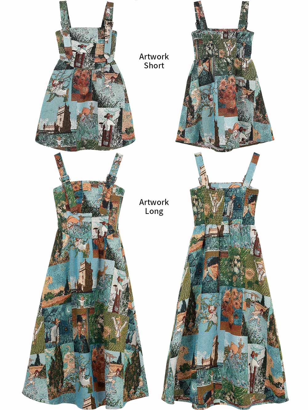 High-End Jacquard Oil Painting Style Pinafore Dress | ZAKAPOP ‐ Artwork Long Dress / 2XL