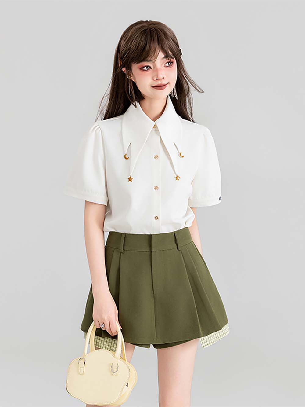 Pointed collar shirt: Wear it layered with skirts for multiple wearing effects.