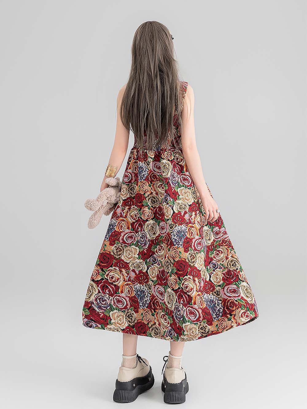 High-End Jacquard Oil Painting Style Pinafore Dress | ZAKAPOP ‐ Flowers Long Dress / 2XL