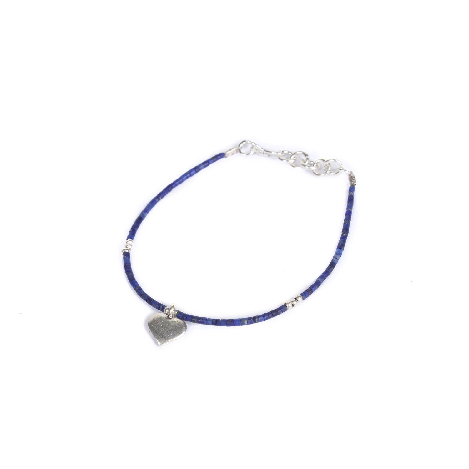 Hmong .925 Silver Heart Charm Wax String Bracelet - Thailand ‐ Blue