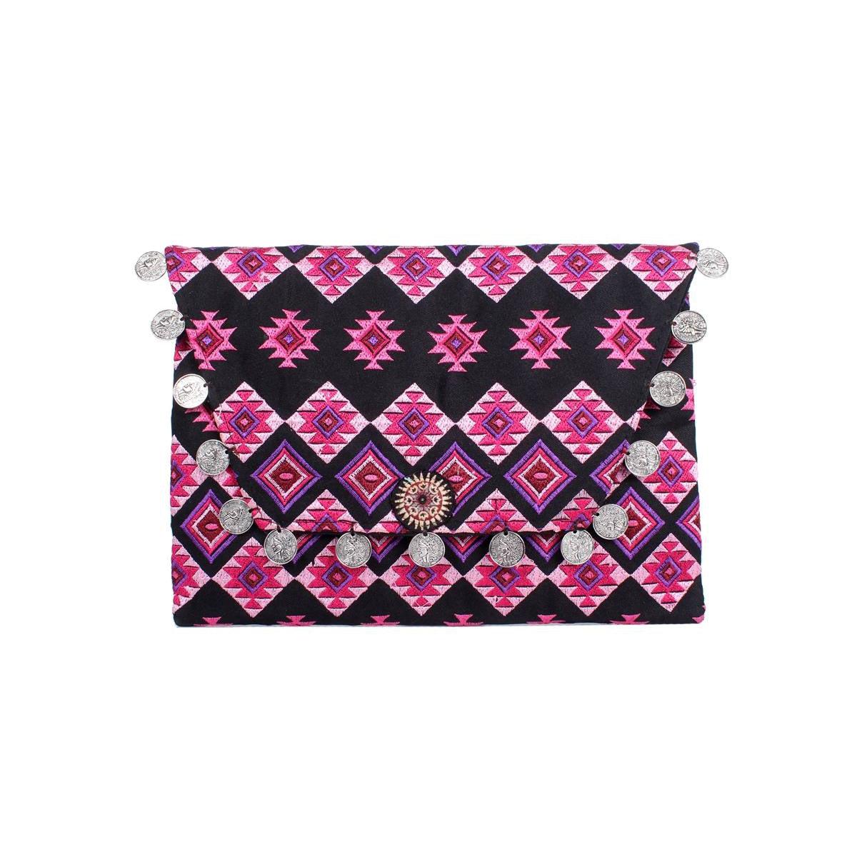 Hmong Embroidered Carnival Coin Clutch | iPad Bag - Thailand ‐ Black & Pink