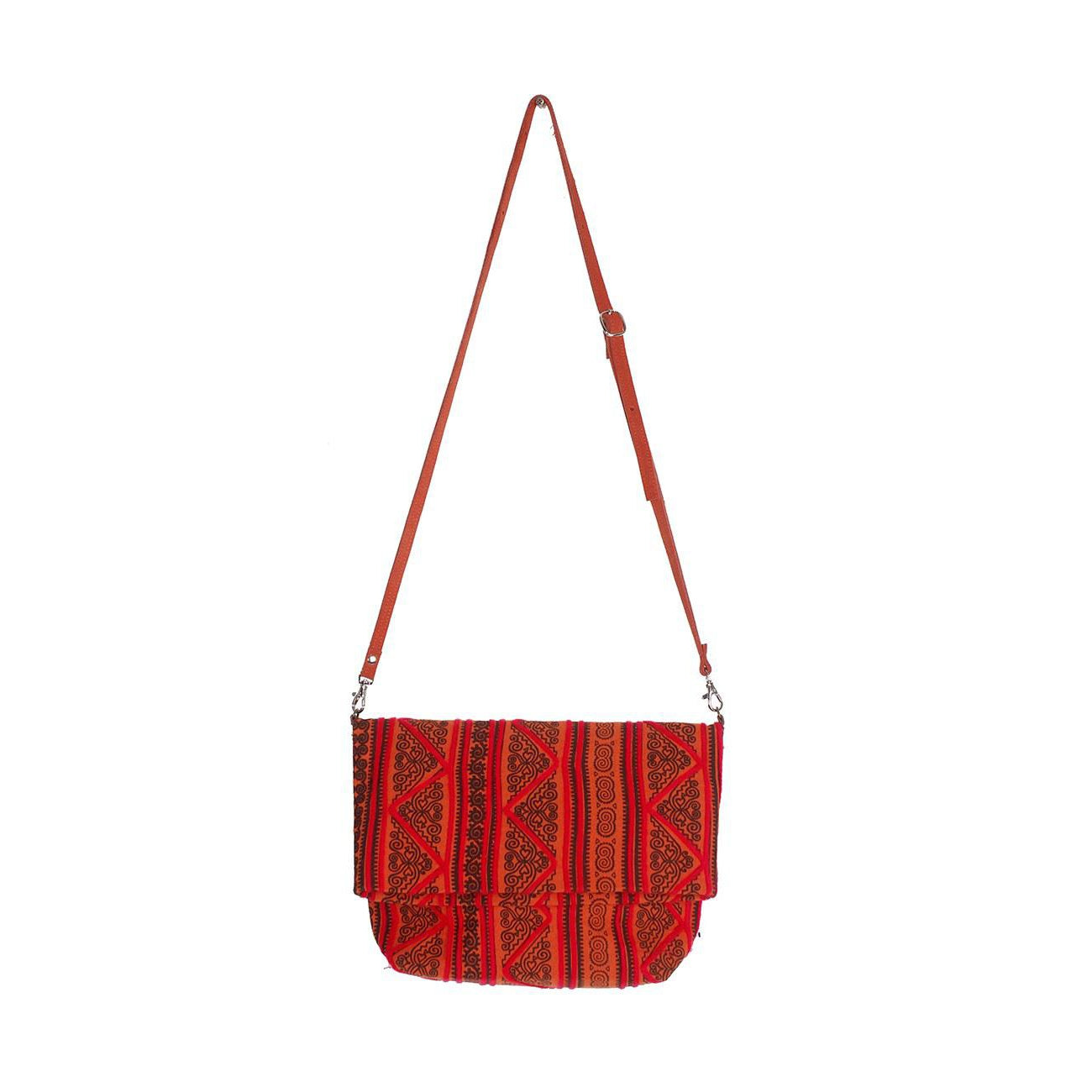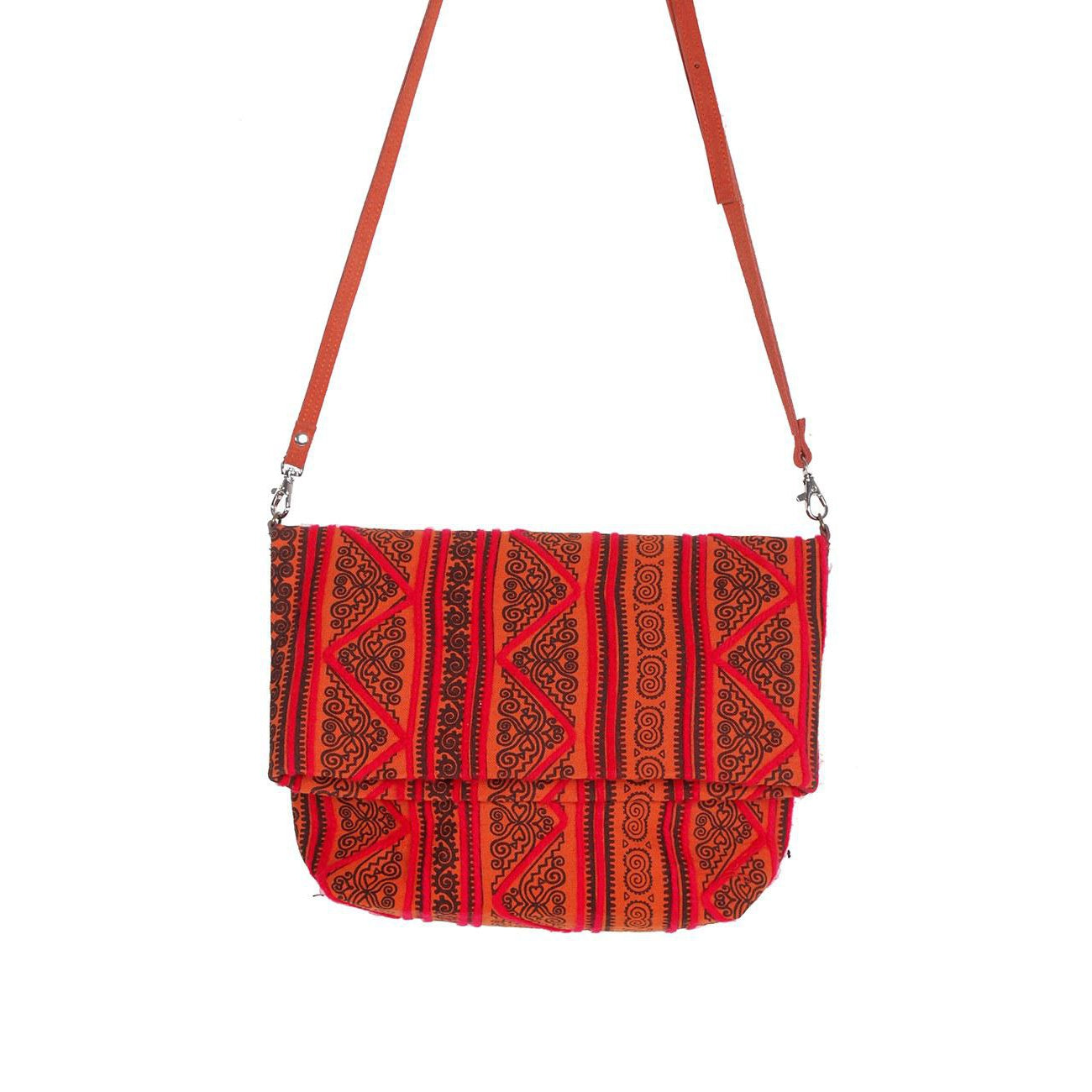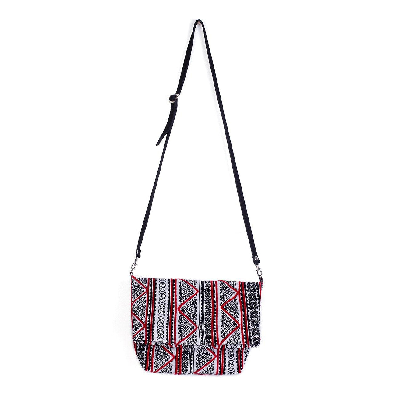 Hmong Fold Over Sling Yarn Crossbody Bag - Thailand ‐ Red