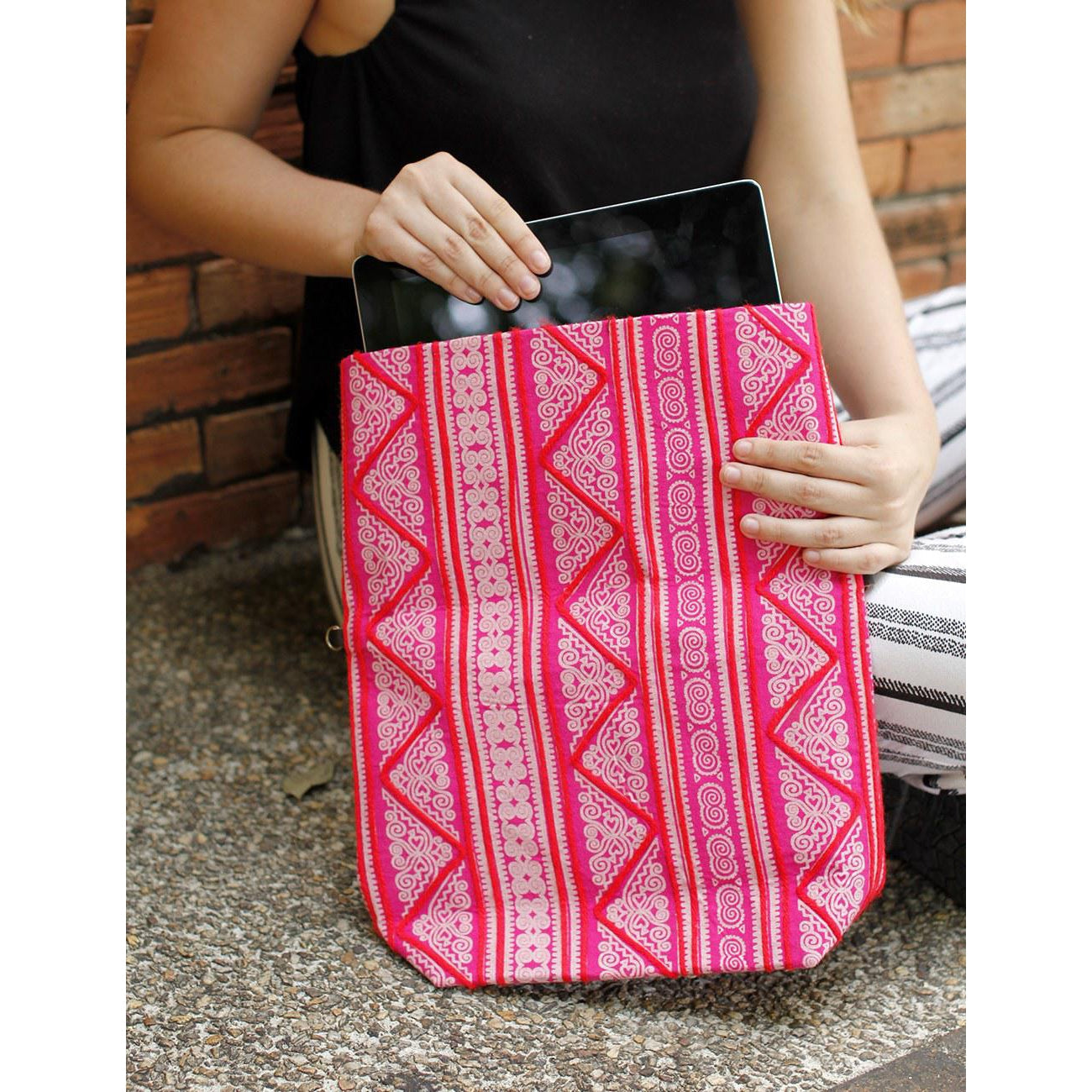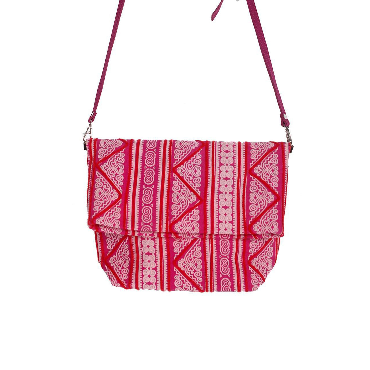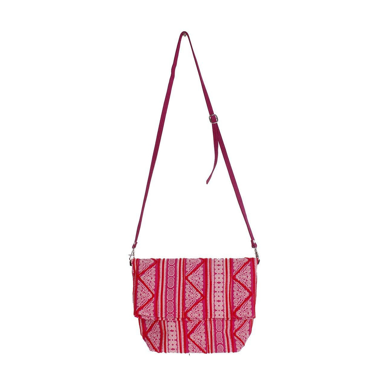 Hmong Fold Over Sling Yarn Crossbody Bag - Thailand ‐ Pink