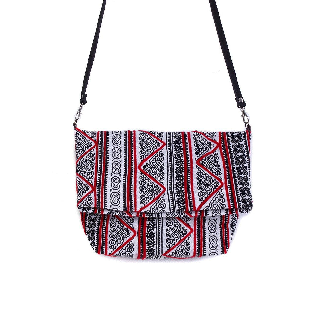Hmong Fold Over Sling Yarn Crossbody Bag - Thailand ‐ Black