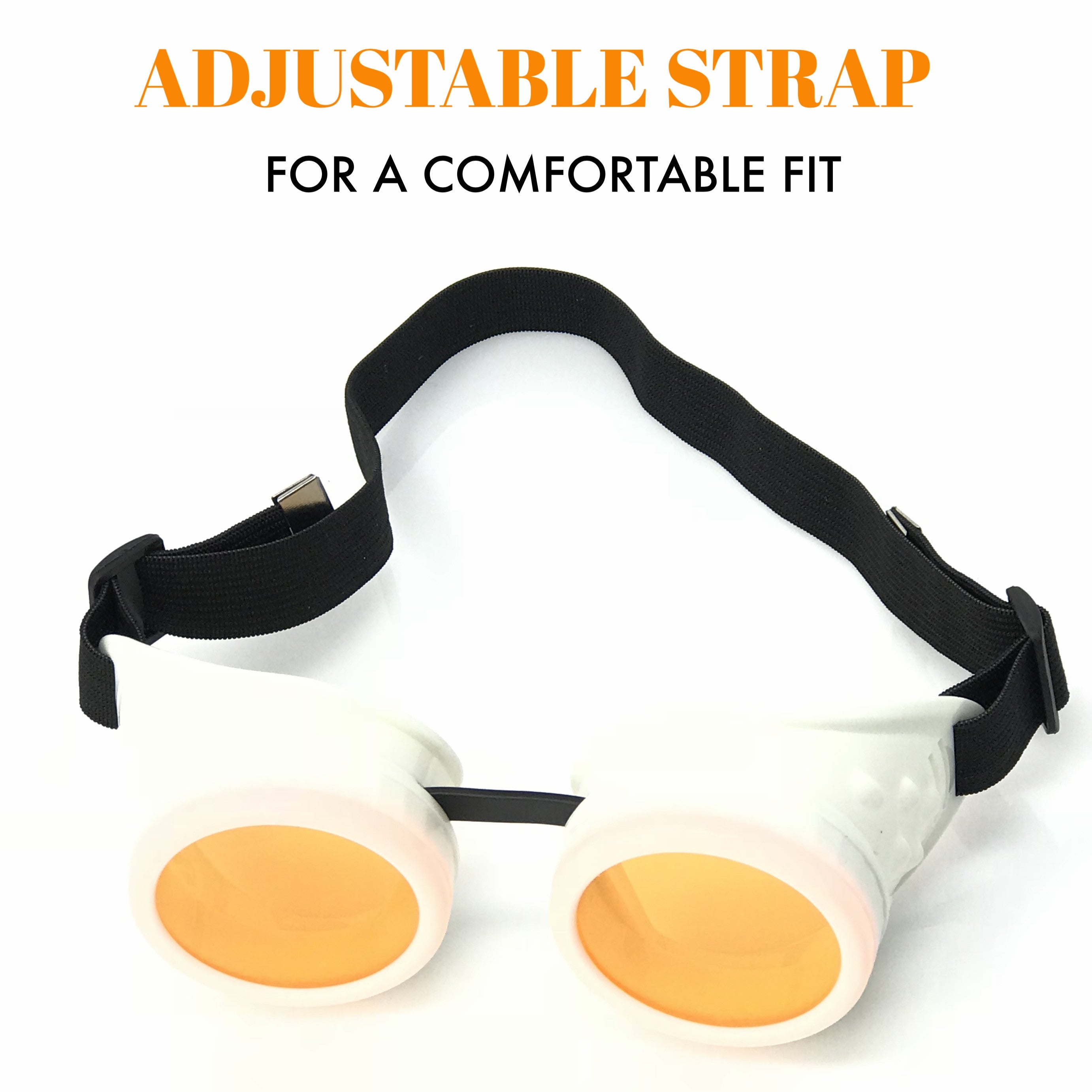 One size - fully adjustable fit. Sturdy elastic head strap makes our diesel punk goggles perfect for any everyone.