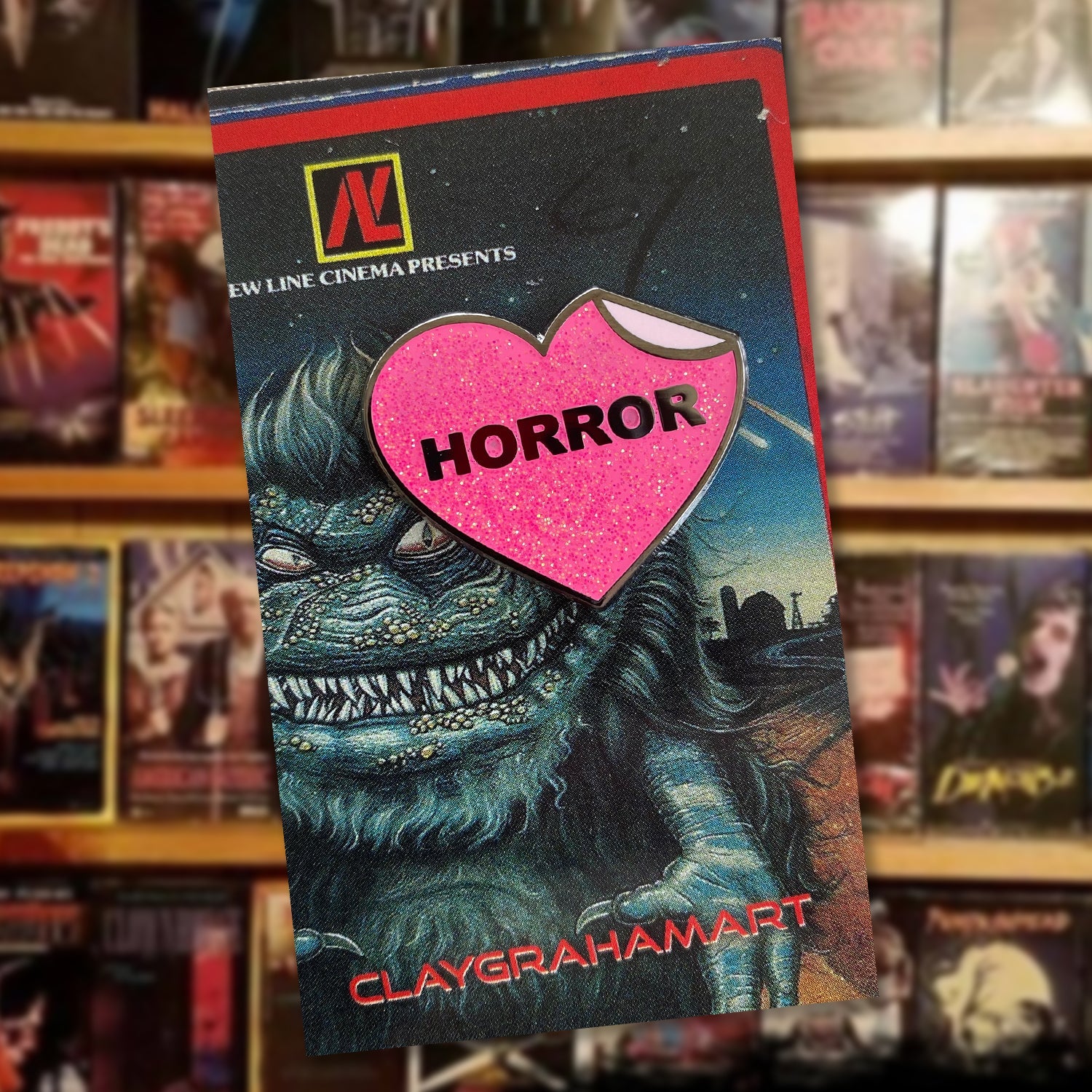 I Heart the Horror Section 1.25" Hard Enamel Pin ‐ PINK W/ GLITTER