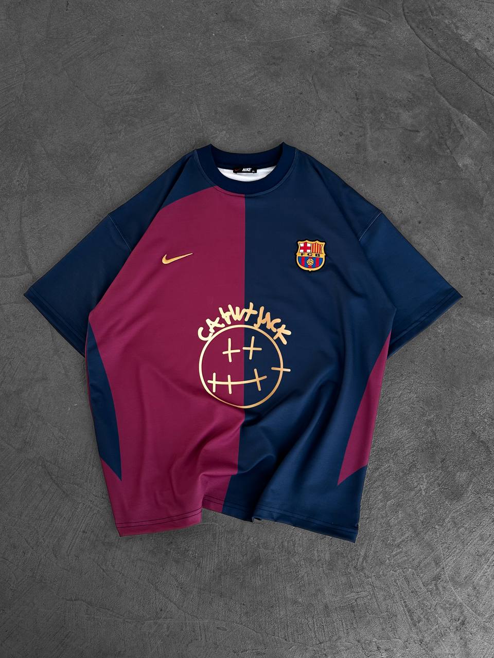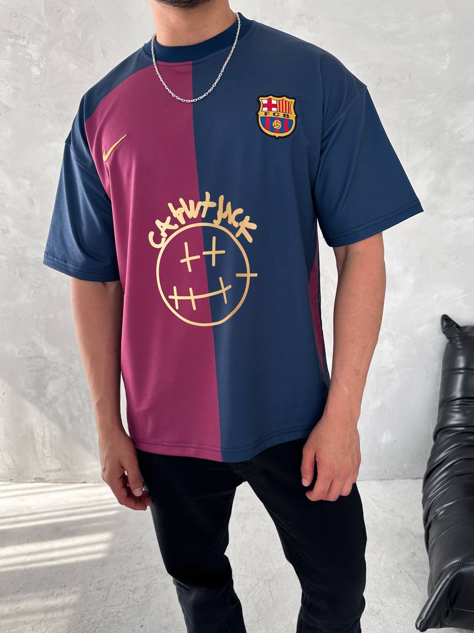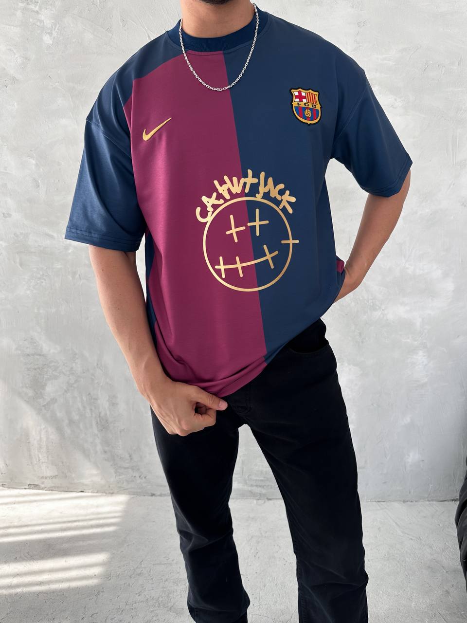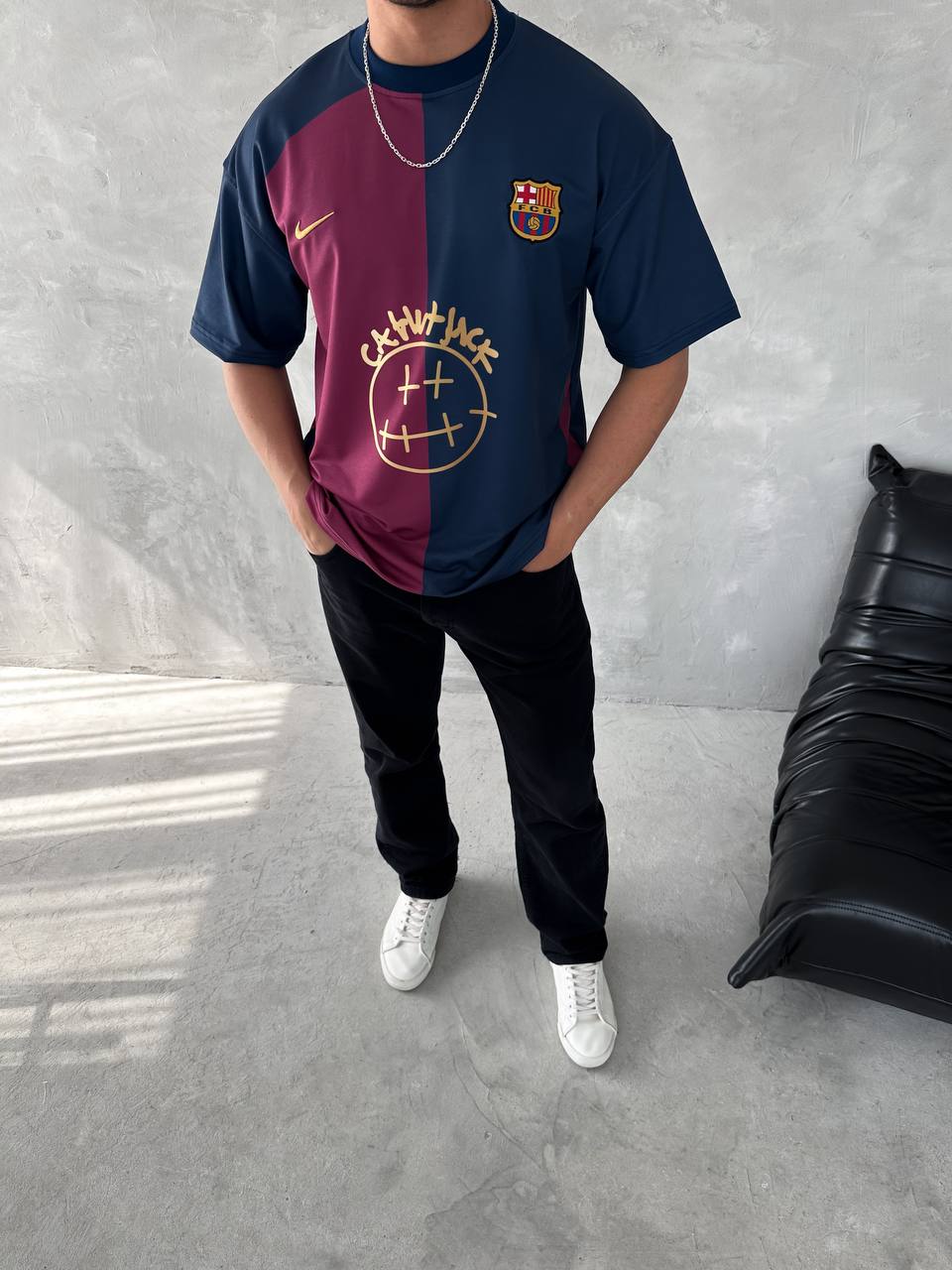 Channel athletic energy and street-smart style with the Iconic Fusion Two-Tone Athletic Tee. Featuring a bold navy and burgundy color combination and oversized fit, this tee delivers comfort, personality, and standout attitude. Designed for movement and made to be seen, it's perfect for fans, fitness, or daily urban looks.
