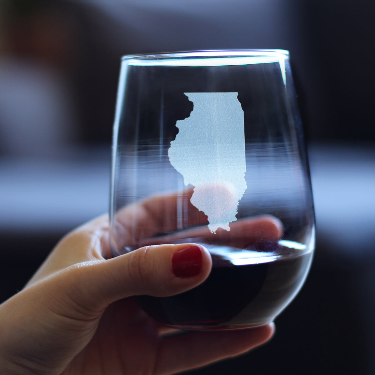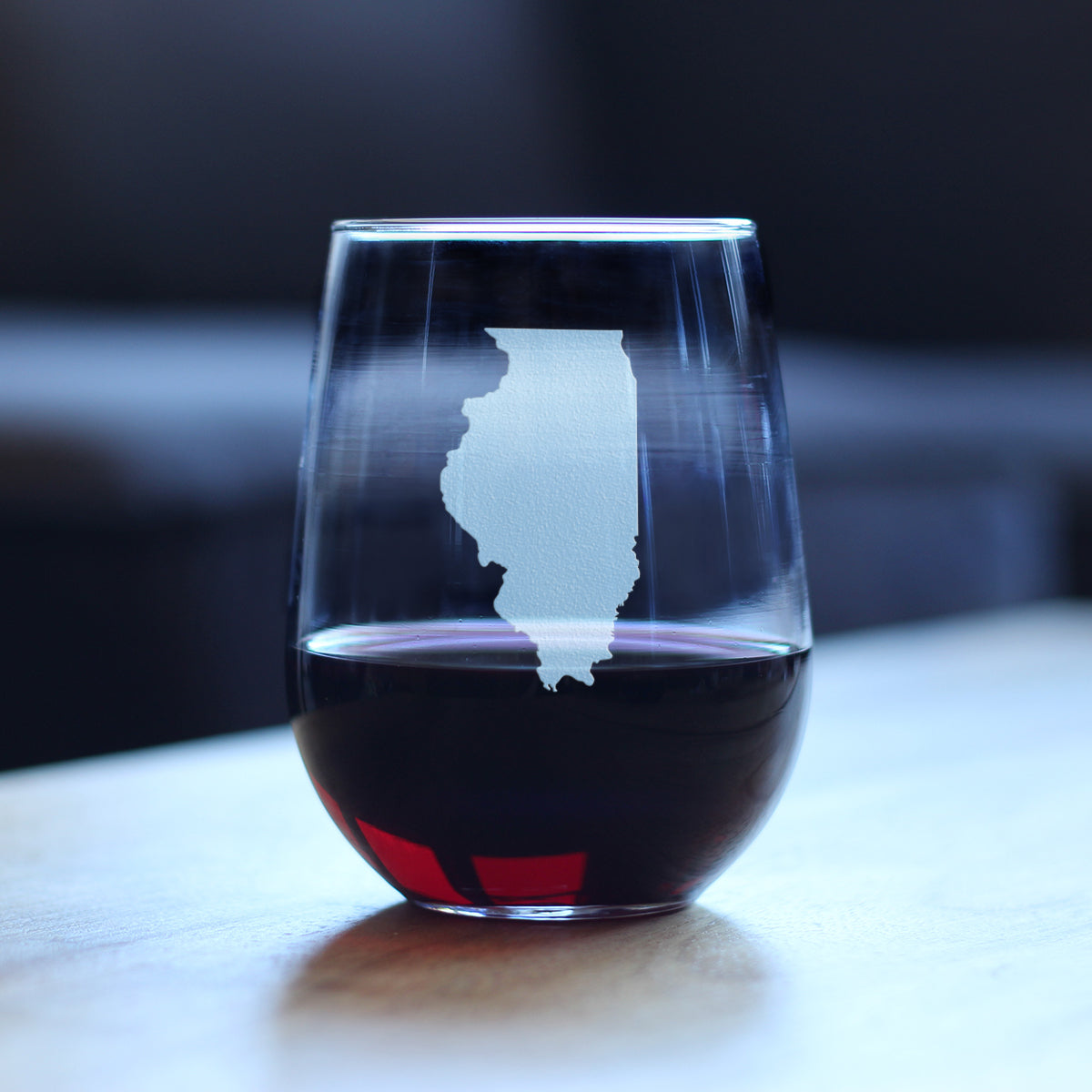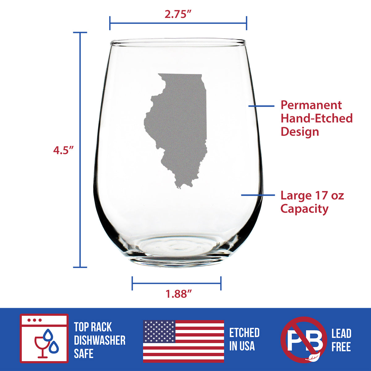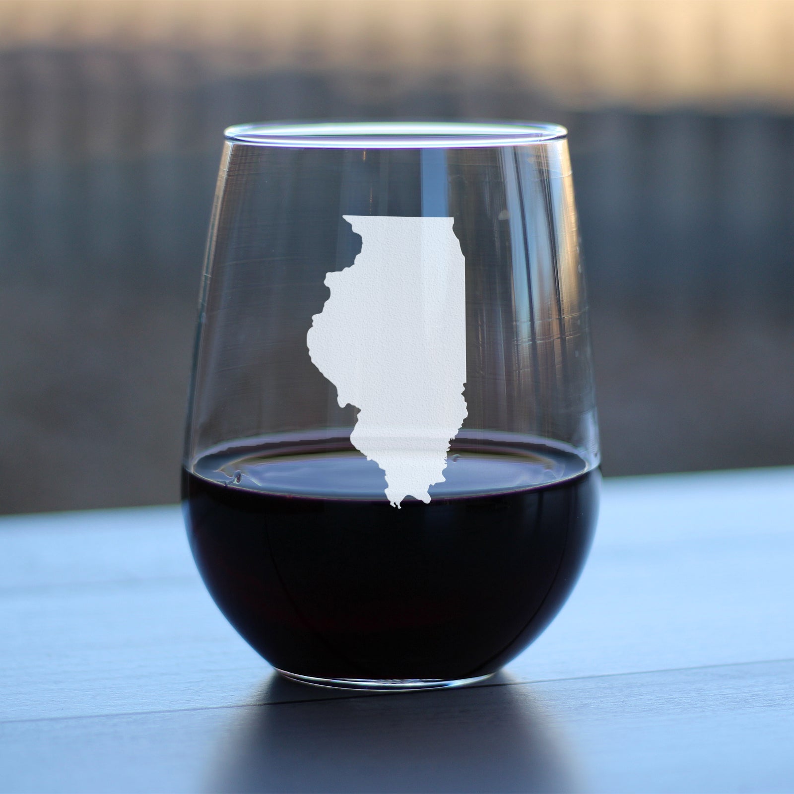 Illinois State Outline Stemless Wine Glass - State Themed Drinking Decor and Gifts for Illinoisan Women & Men - Large 17 Oz Glasses