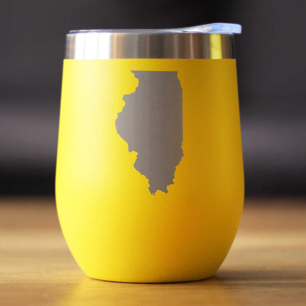Illinois State Outline - Wine Tumbler ‐ Yellow