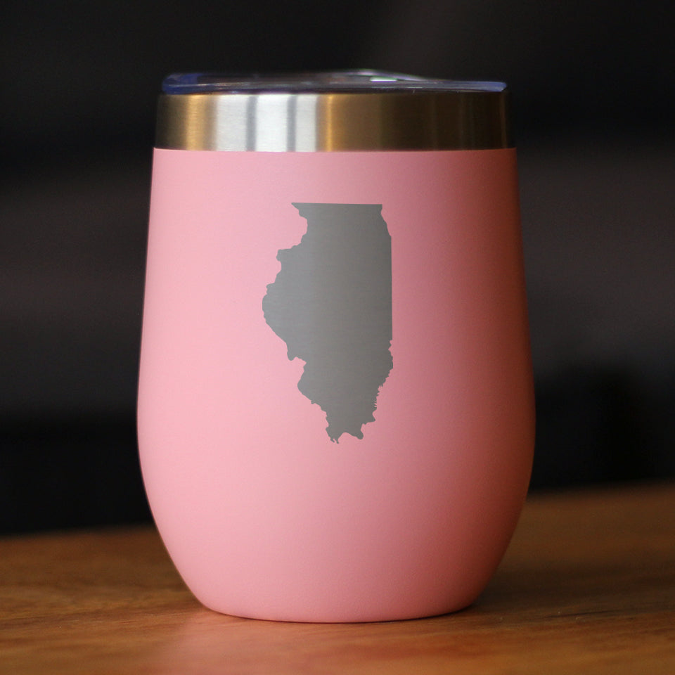 Illinois State Outline - Wine Tumbler ‐ Pink