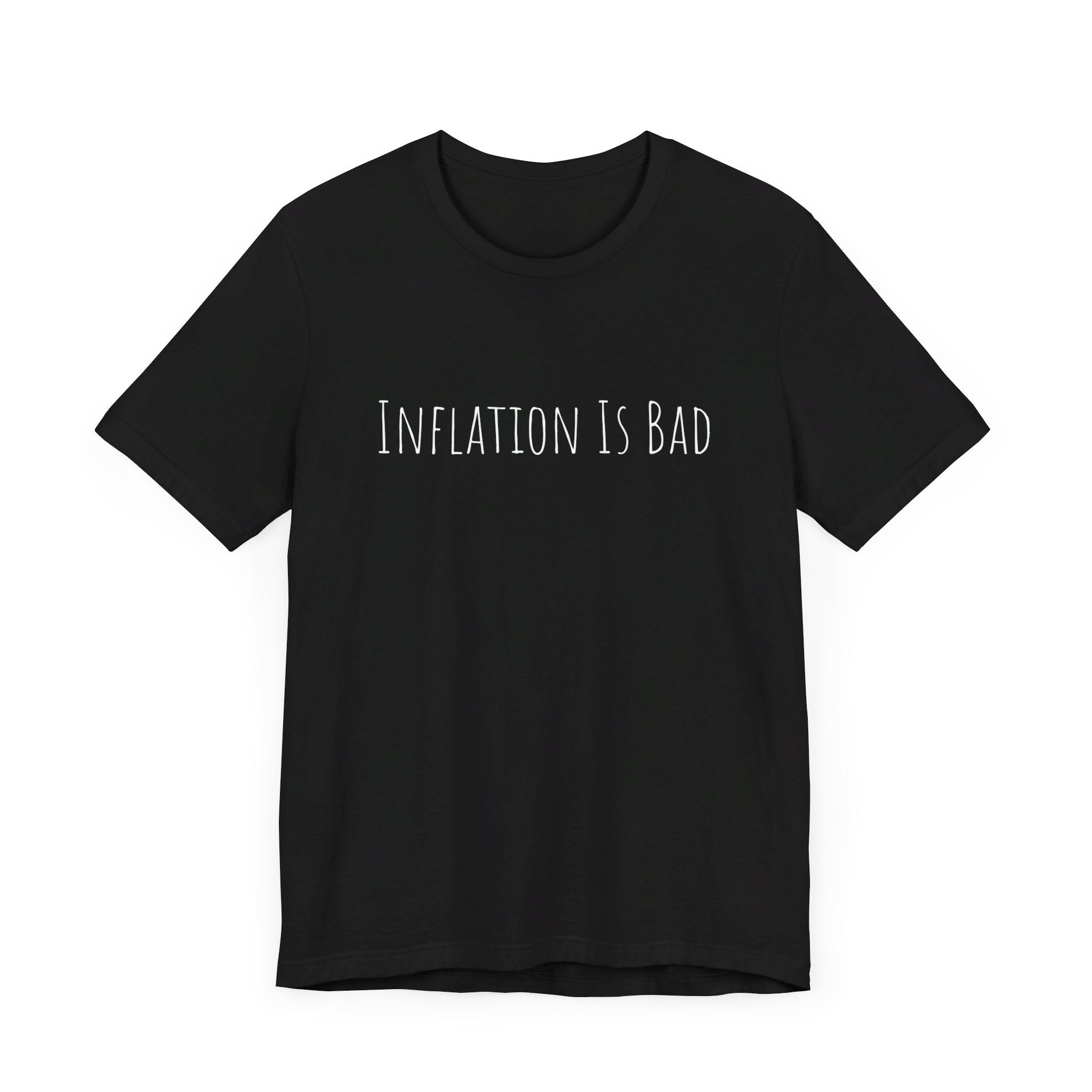 Show your distaste for inflation with style and humor. This "Inflation Is Bad" t-shirt is the perfect blend of comfort, quality, and a not-so-subtle economic statement. Wear it proudly and let everyone know you stand against rising prices!