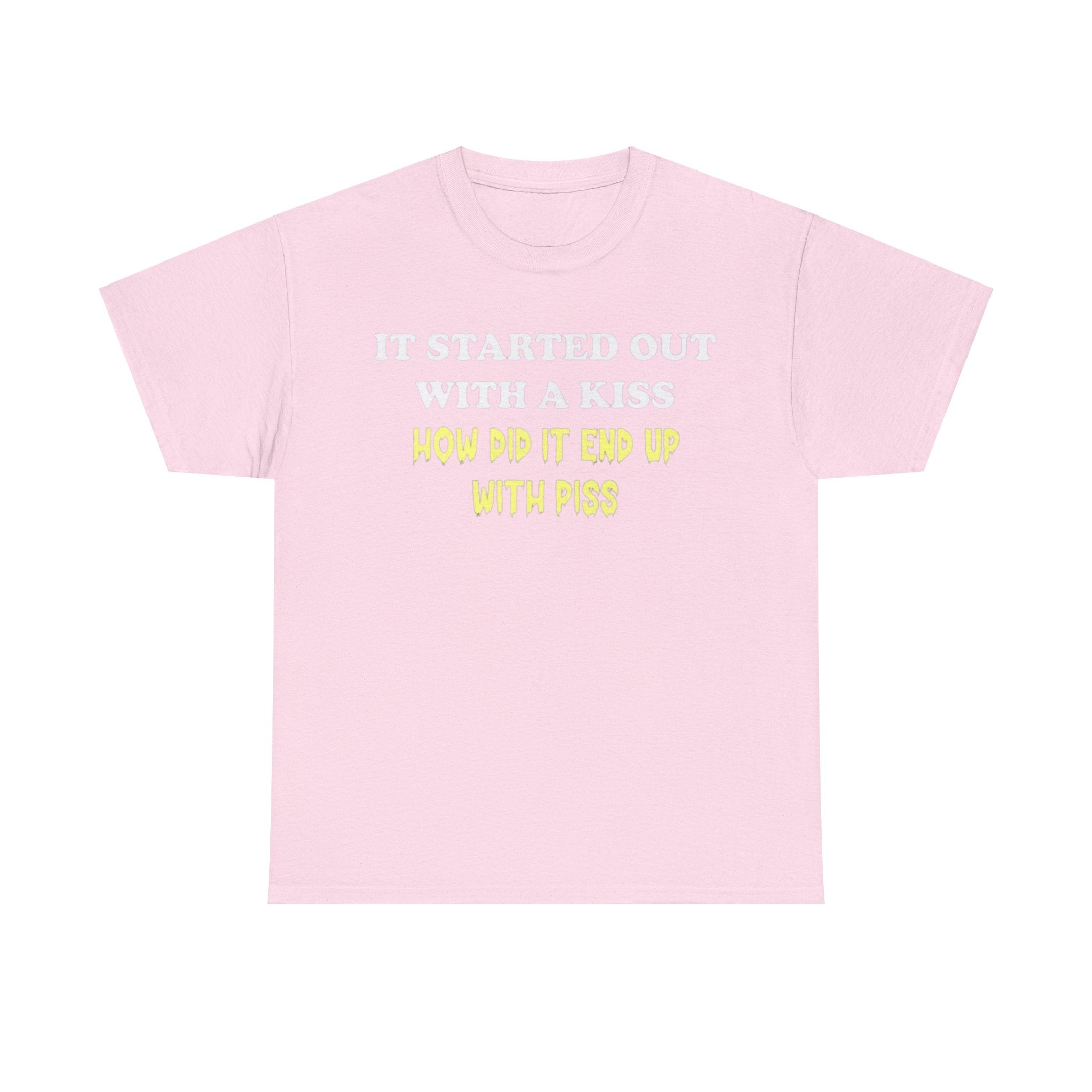 It started out with a kiss how did it end up with p**s Funny T-shirt