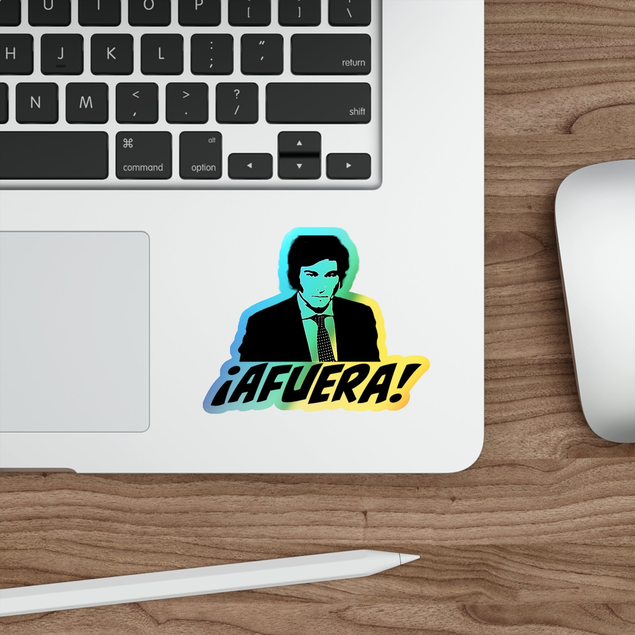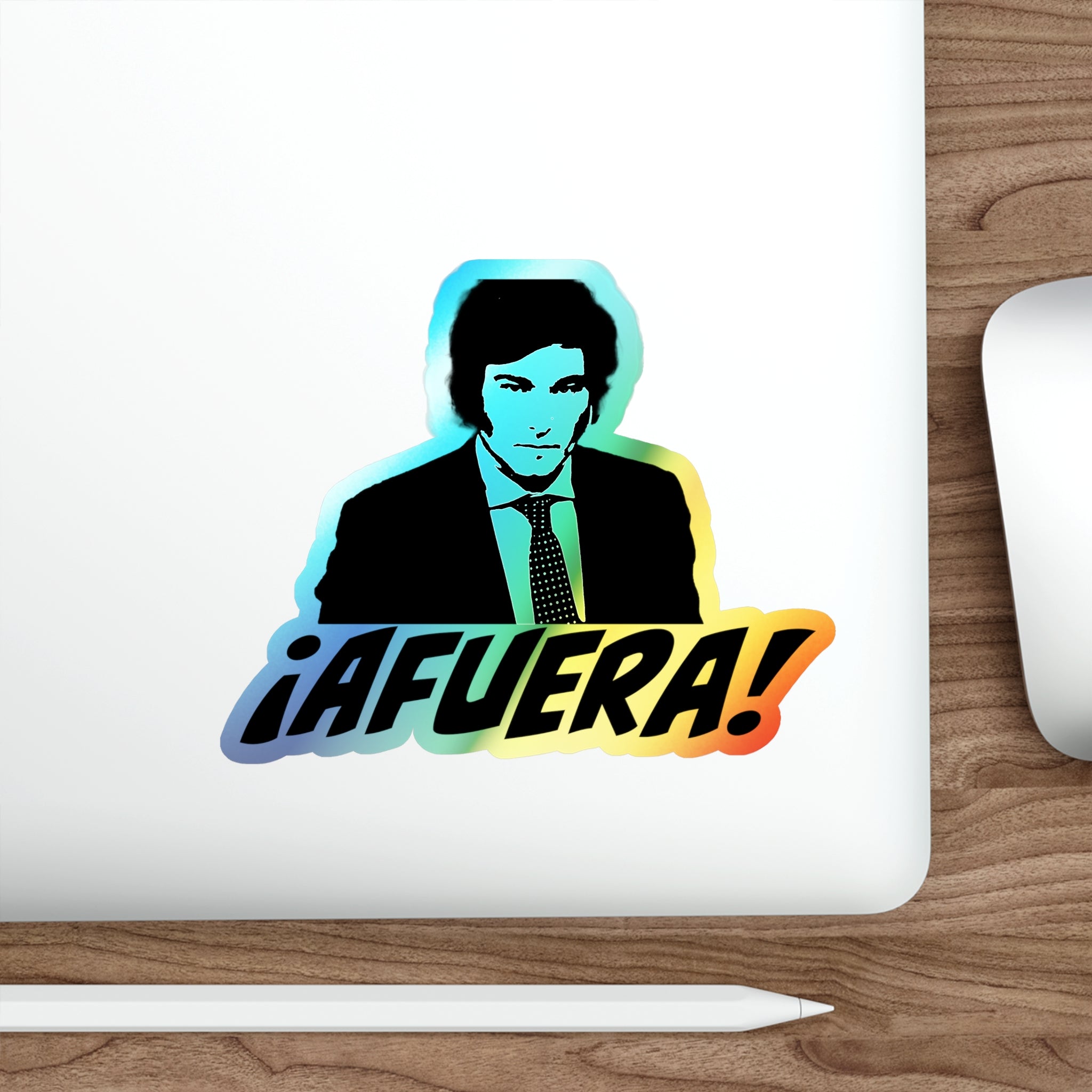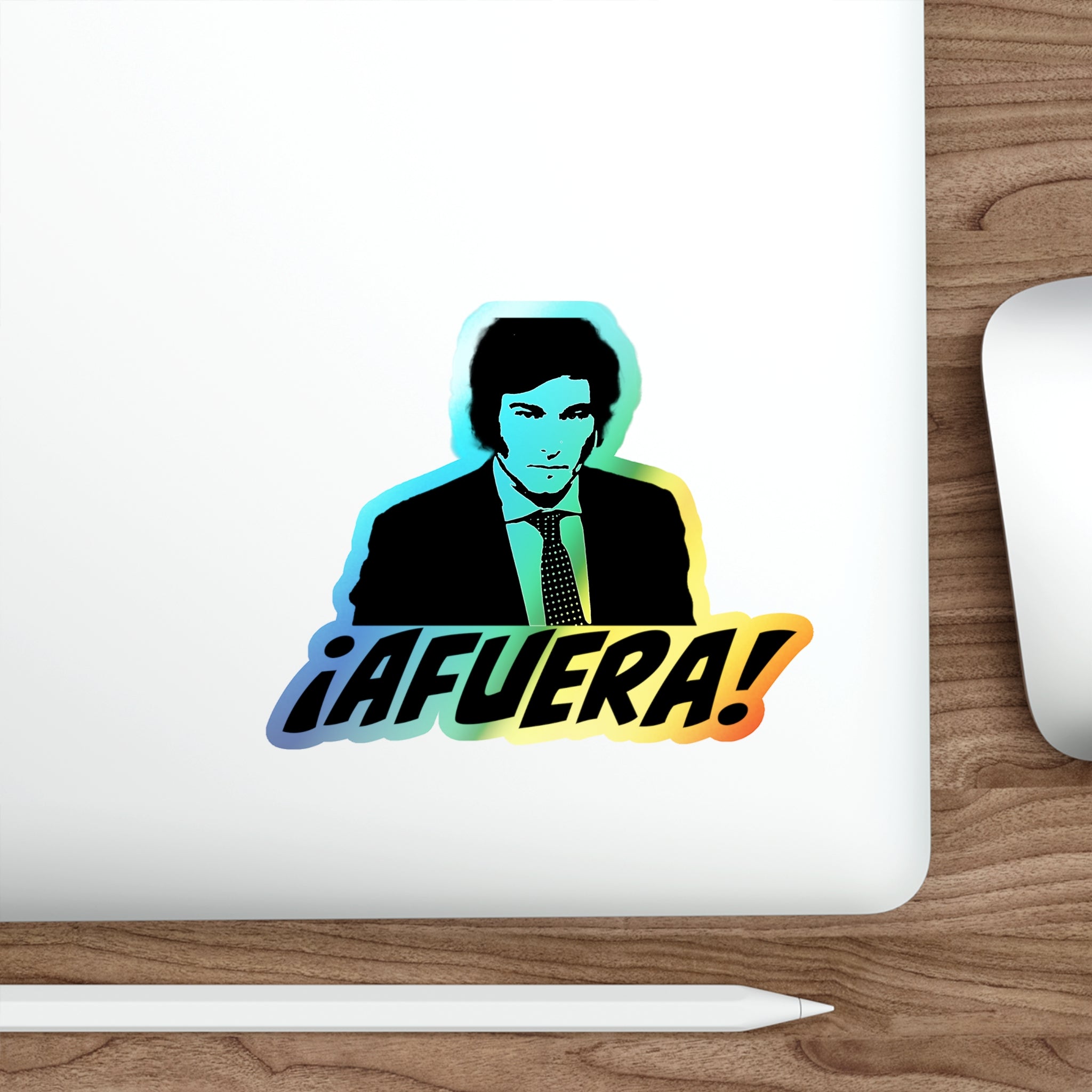 Javier Milei ¡AFUERA! Holographic Sticker ‐ 5" × 5" / Die-Cut / Holographic