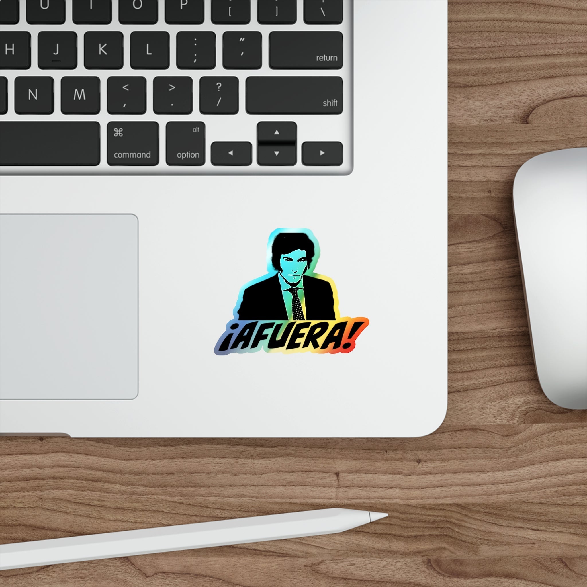 Javier Milei ¡AFUERA! Holographic Sticker ‐ 3" × 3" / Die-Cut / Holographic