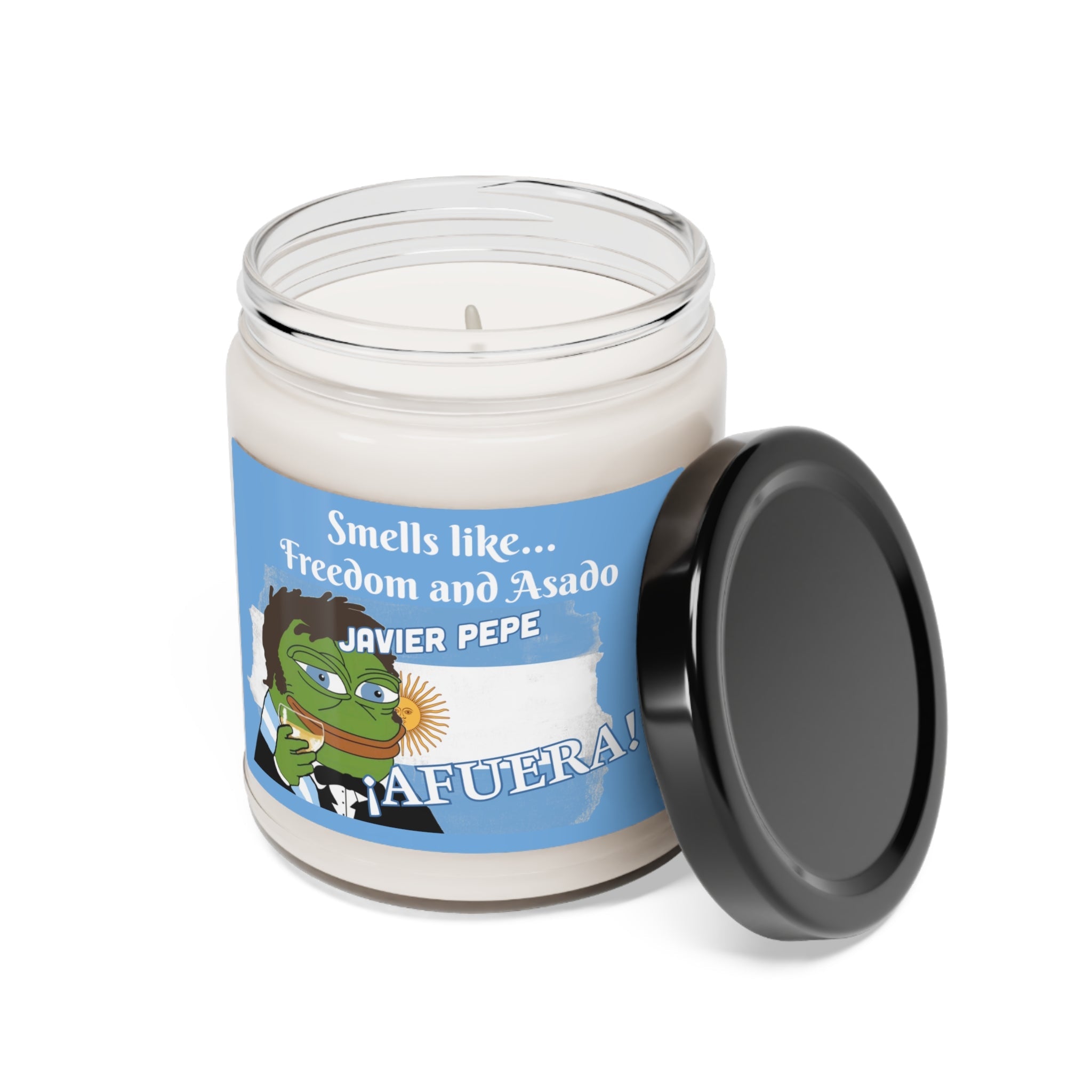 Javier Milei Pepe "Freedom and Asado" Scented Soy Candle, 9oz - 4LibertyShop.com