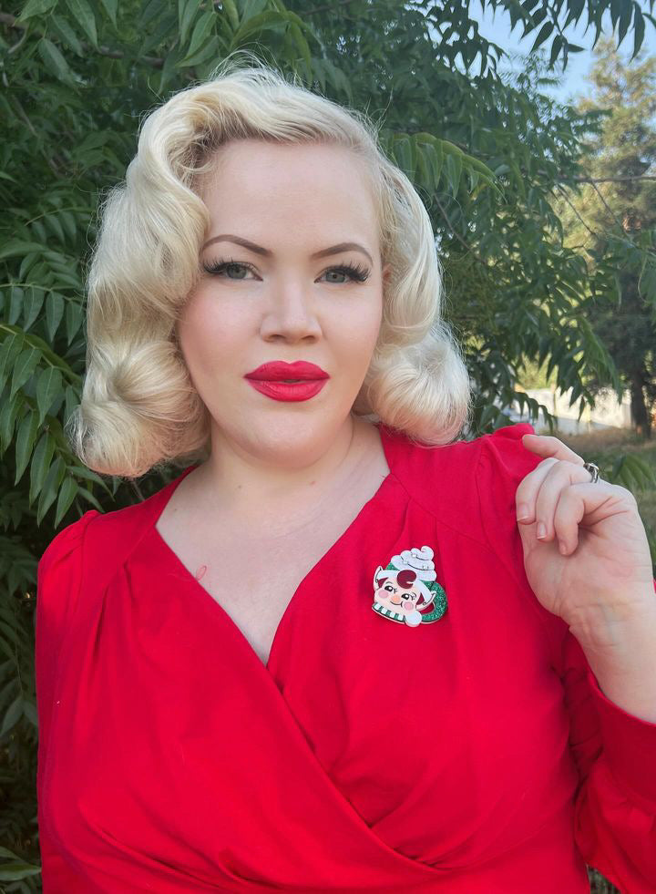 Each Lipstick & Chrome piece is handcrafted with laser cut acrylic resin and hand painted. You may find slight variations in the coloring and resin pattern from piece to piece. Our brooches are meant to remind you of the charm and personality of vintage Bakelite, Celluloid or Lucite jewelry. We hope you love them!