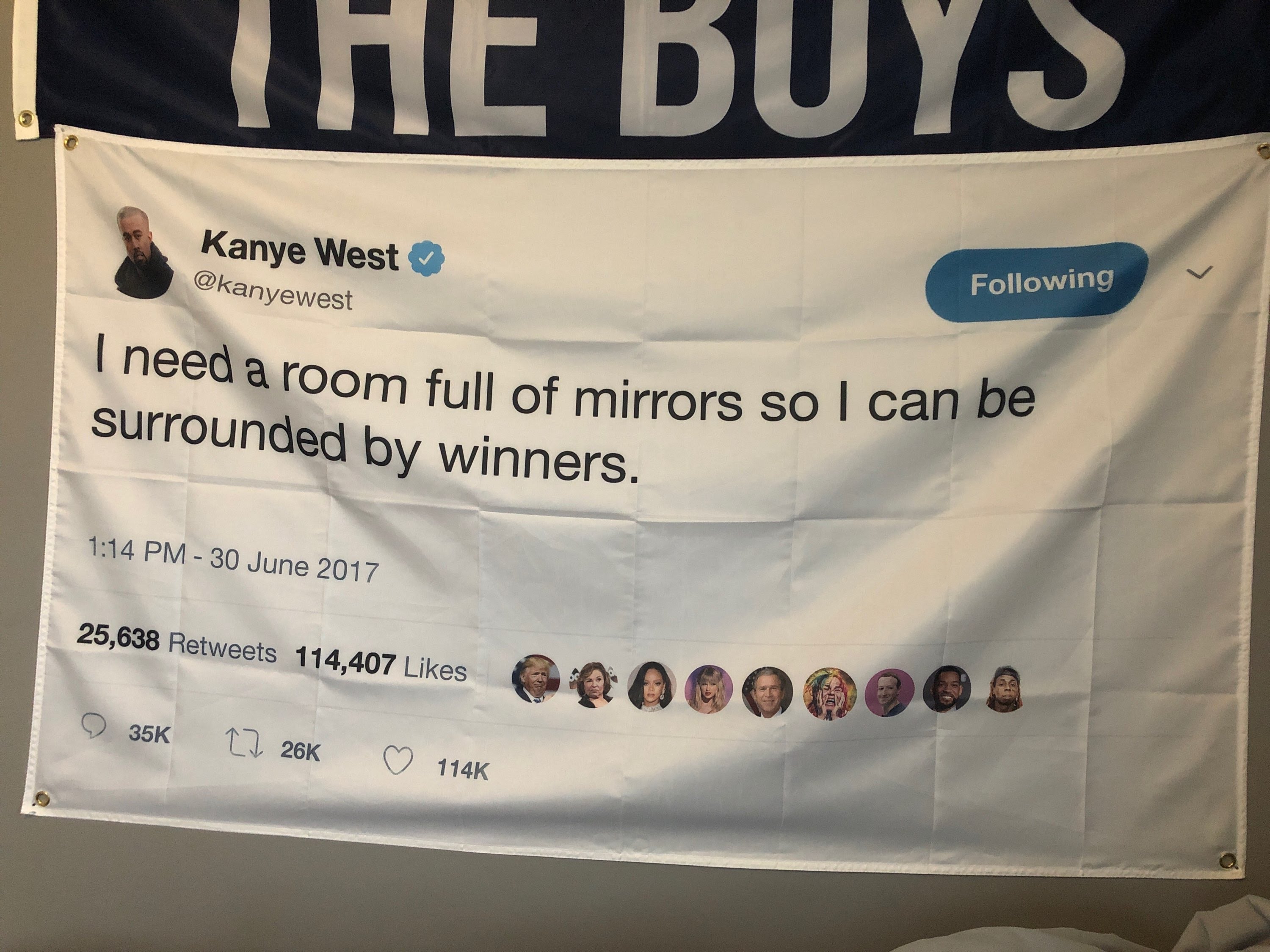 This Kanye West tweet flag brings instant swagger and big winner energy wherever you hang it up.