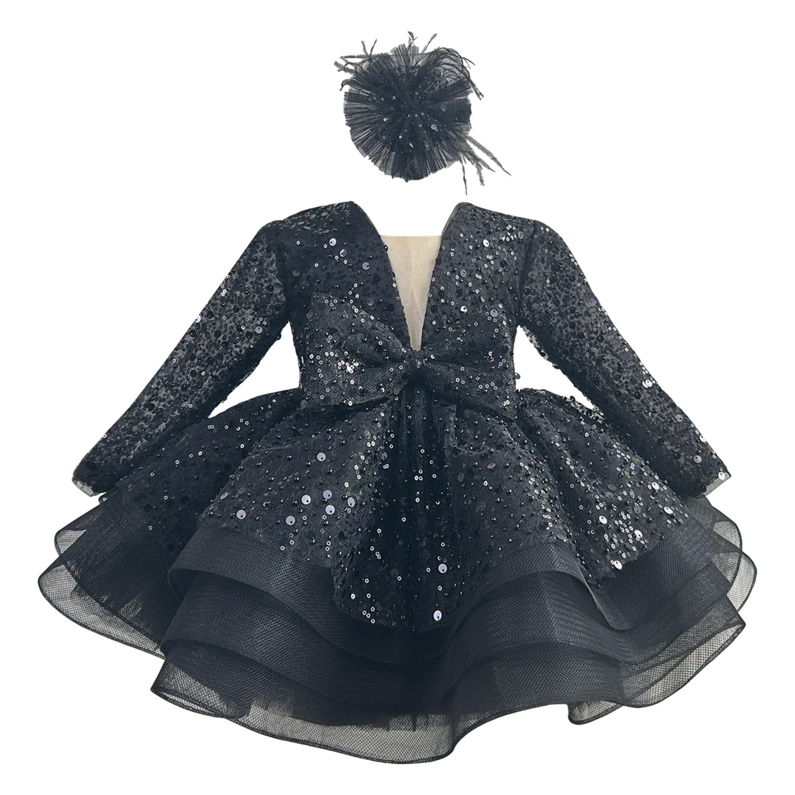 KLFFLGID Baby Girl Pageant Dress Sequins Embroidered Lace Toddler Flower Wedding Birthday Party Gown Dresses ‐ Black / 12-18 Months