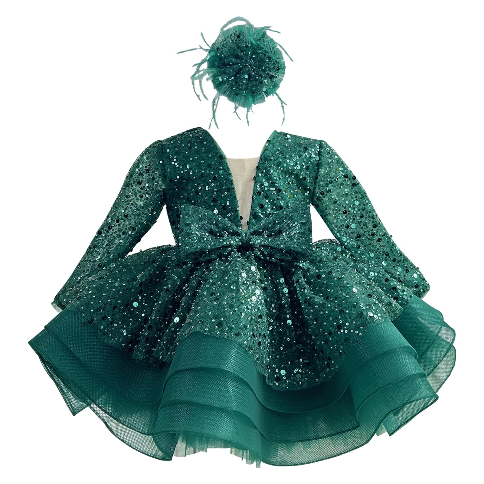 KLFFLGID Baby Girl Pageant Dress Sequins Embroidered Lace Toddler Flower Wedding Birthday Party Gown Dresses ‐ Green / 12-18 Months