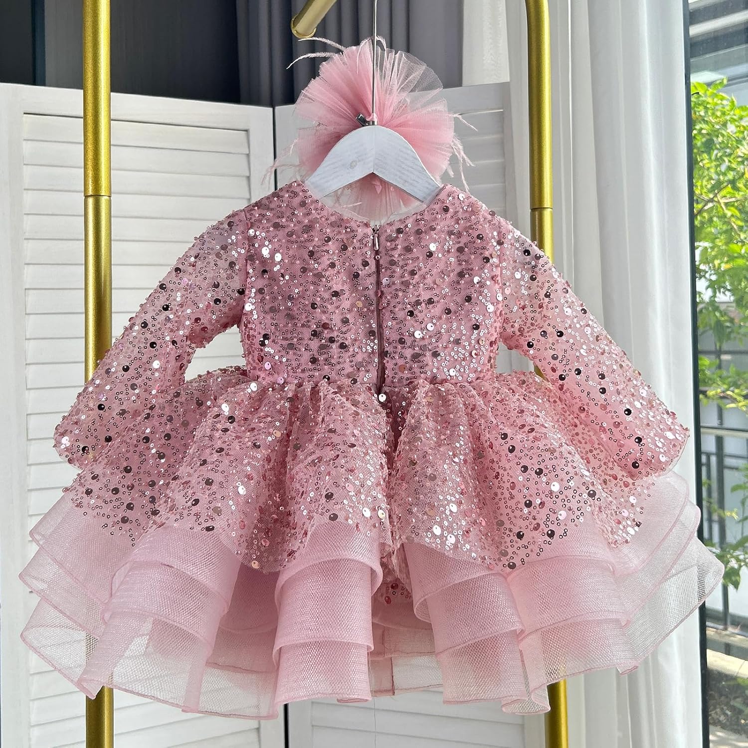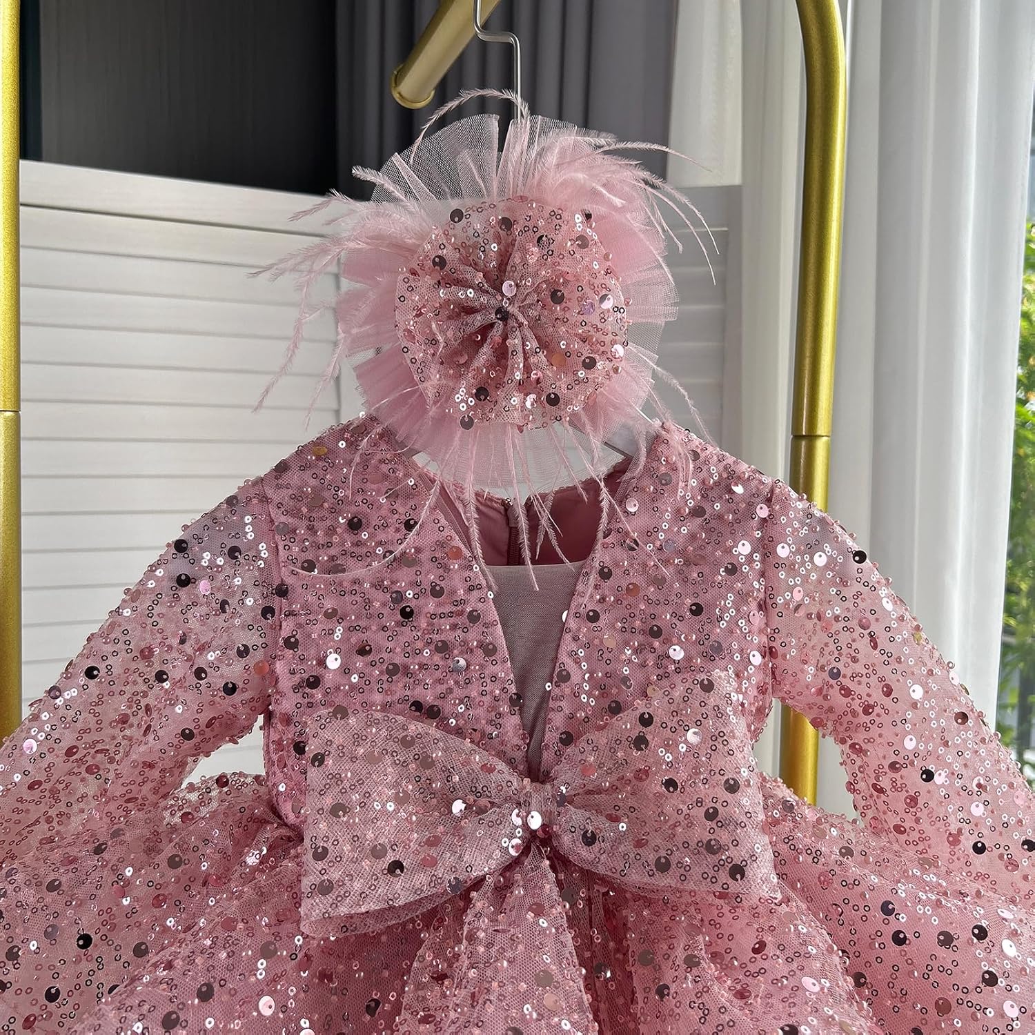 KLFFLGID Baby Girl Pageant Dress Sequins Embroidered Lace Toddler Flower Wedding Birthday Party Gown Dresses