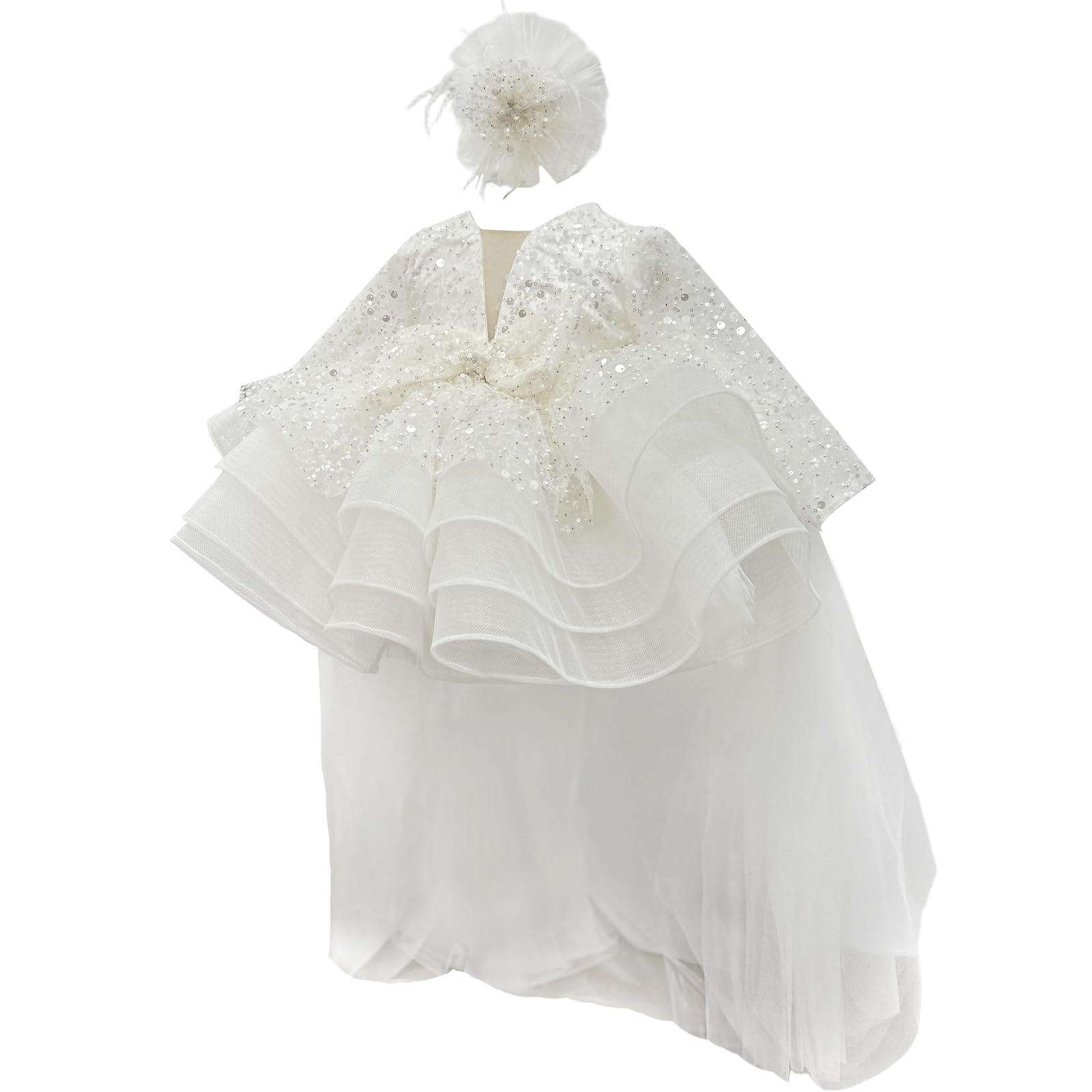 KLFFLGID Baby Girl Pageant Dress Sequins Embroidered Lace Toddler Flower Wedding Birthday Party Gown Dresses ‐ Lvory White / 12-18 Months