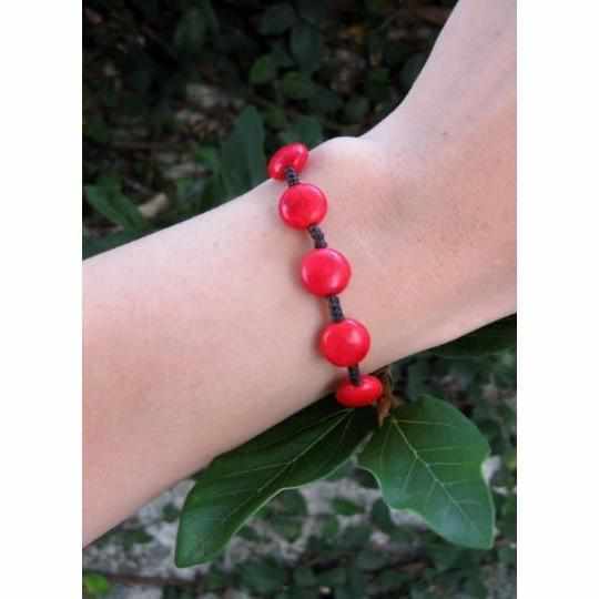 Knotted Circle Bead Adjustable Bracelet - Thailand ‐ Red