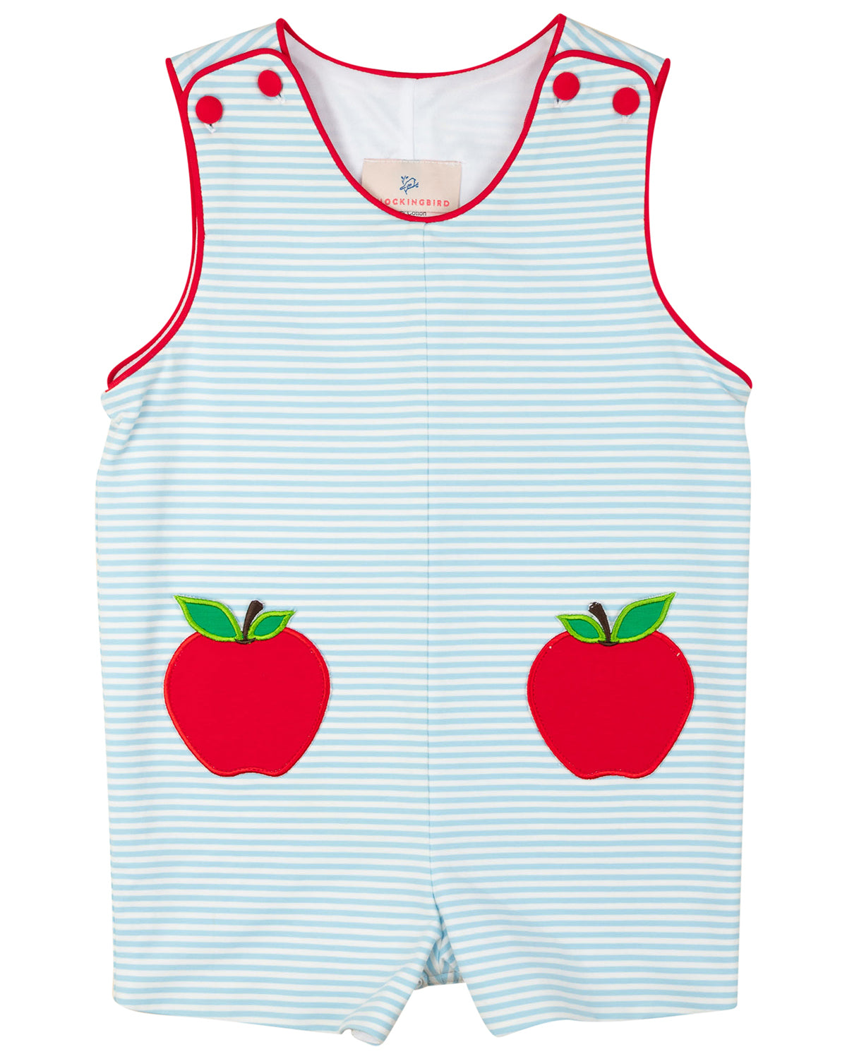 Light Blue Apple Pocket Knit Shortall- FINAL SALE ‐ 2T