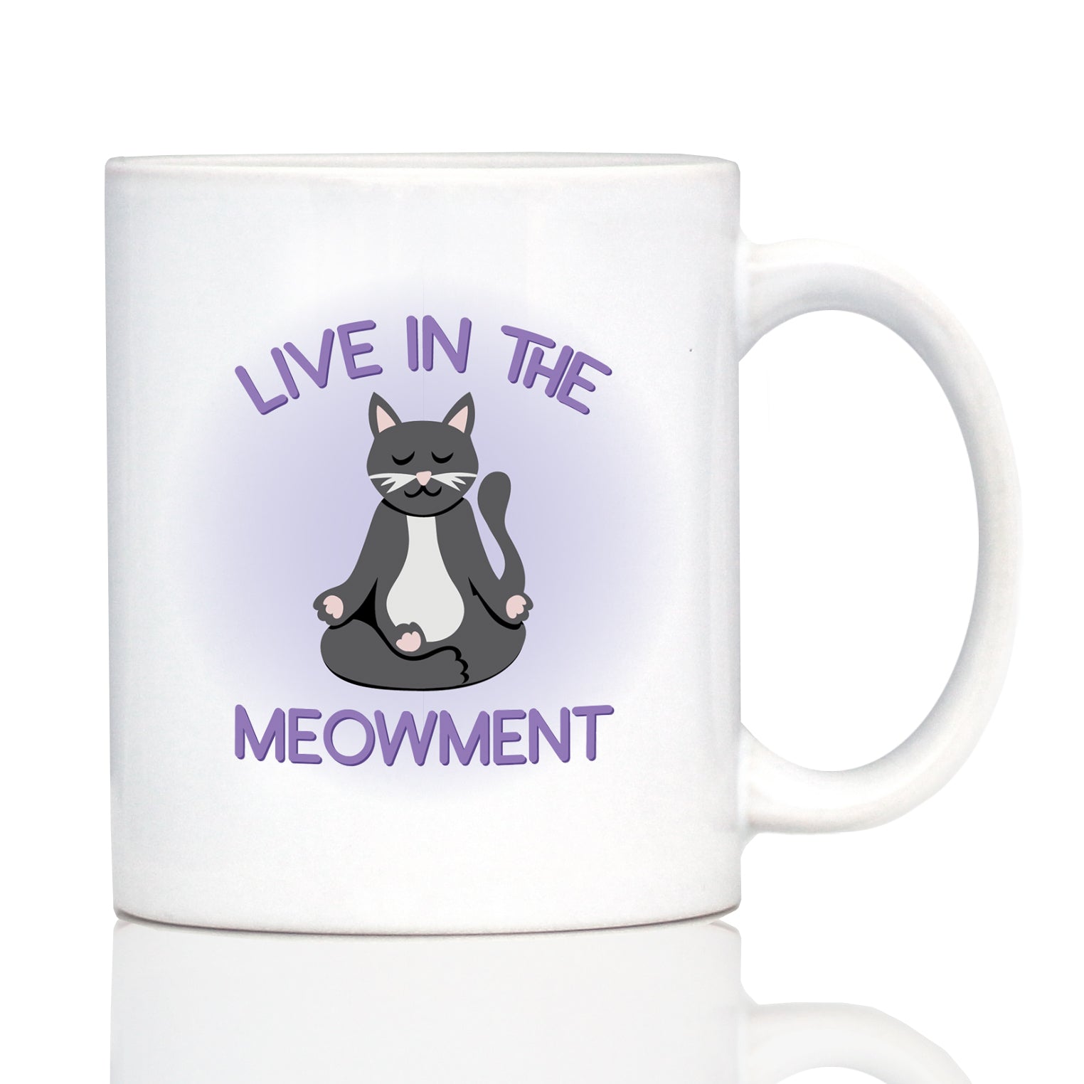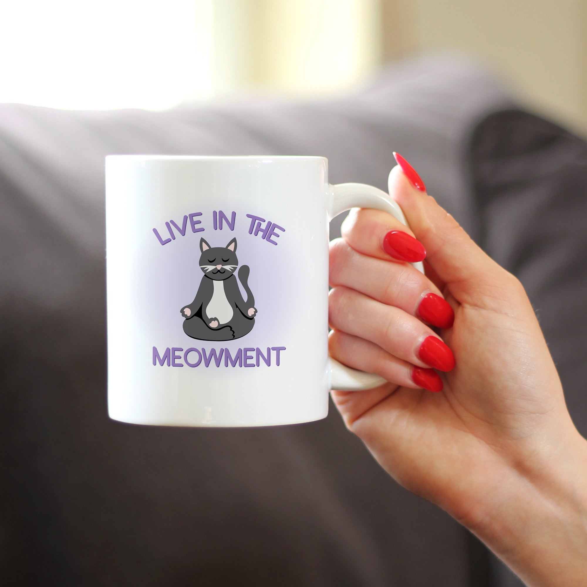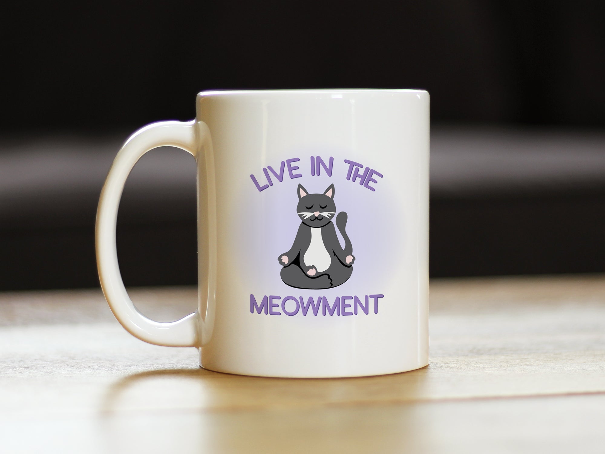 Live In The Meowment Coffee Mug - Funny Cat Gifts and Meditation Themed Decor ‐ 11 oz