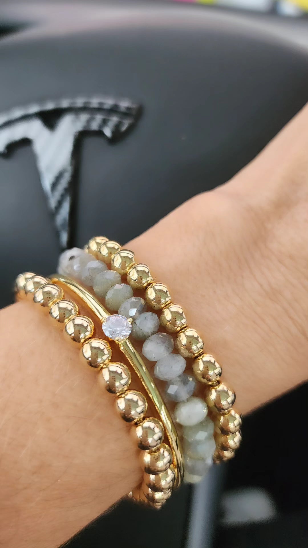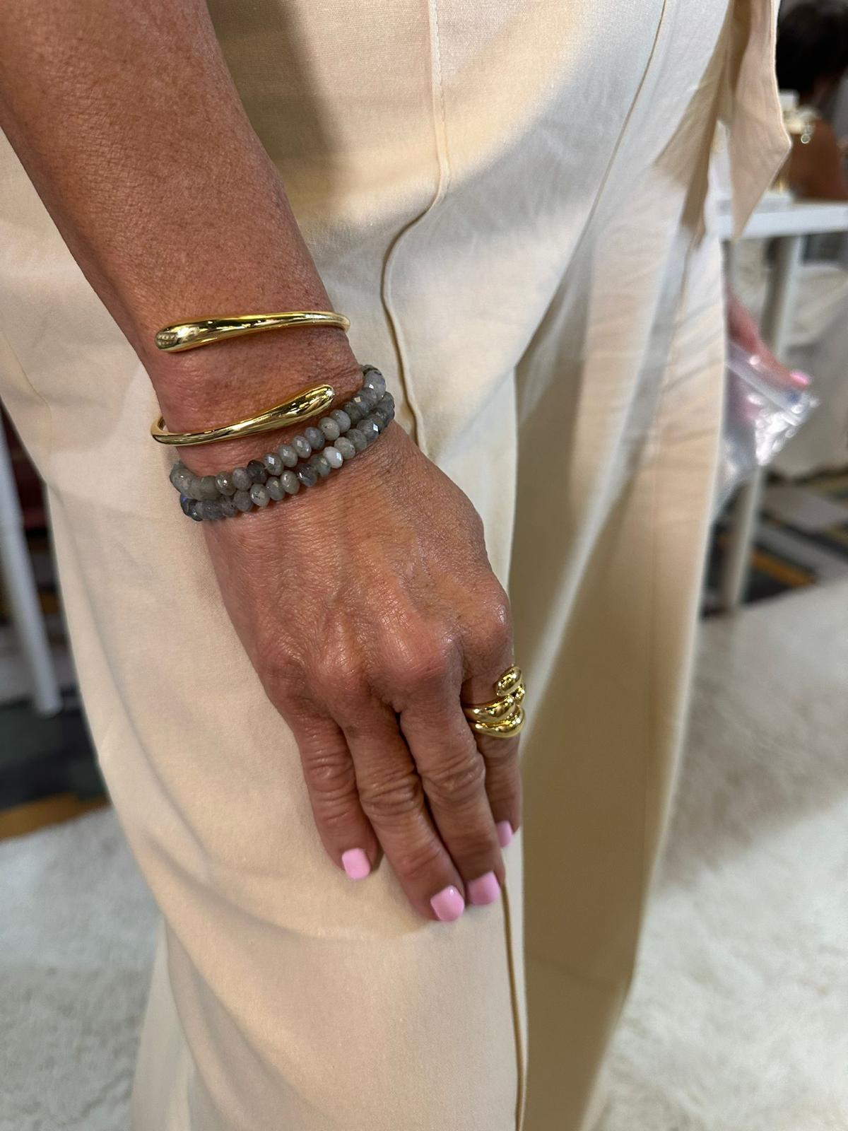 Make a bold statement with this uniquely designed LOA labradorite bracelet. Crafted with 18k goldfilled and 6" plus 2" in length, this stunning piece is sure to make you shine! Its natural blue-green labradorite stone is sure to captivate onlookers.