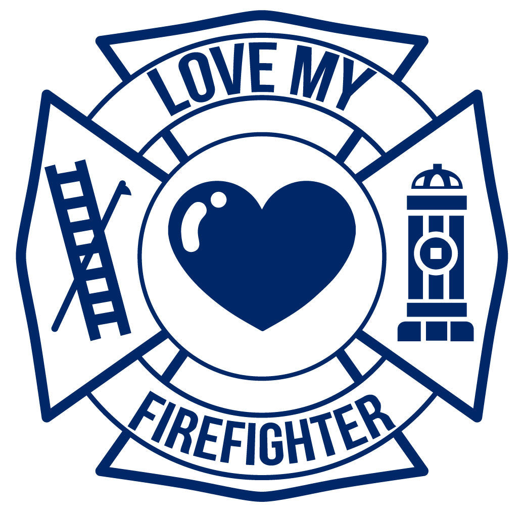 LOVE MY FIREFIGHTER MALTESE CROSS WINDOW DECAL ‐ Dark Blue