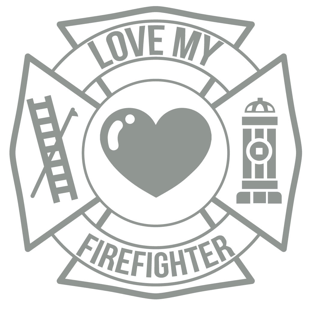 LOVE MY FIREFIGHTER MALTESE CROSS WINDOW DECAL ‐ Grey