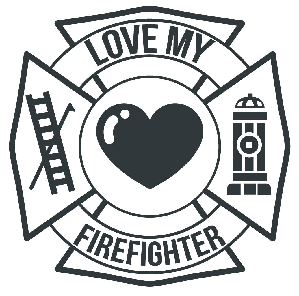 LOVE MY FIREFIGHTER MALTESE CROSS WINDOW DECAL ‐ Matte Black