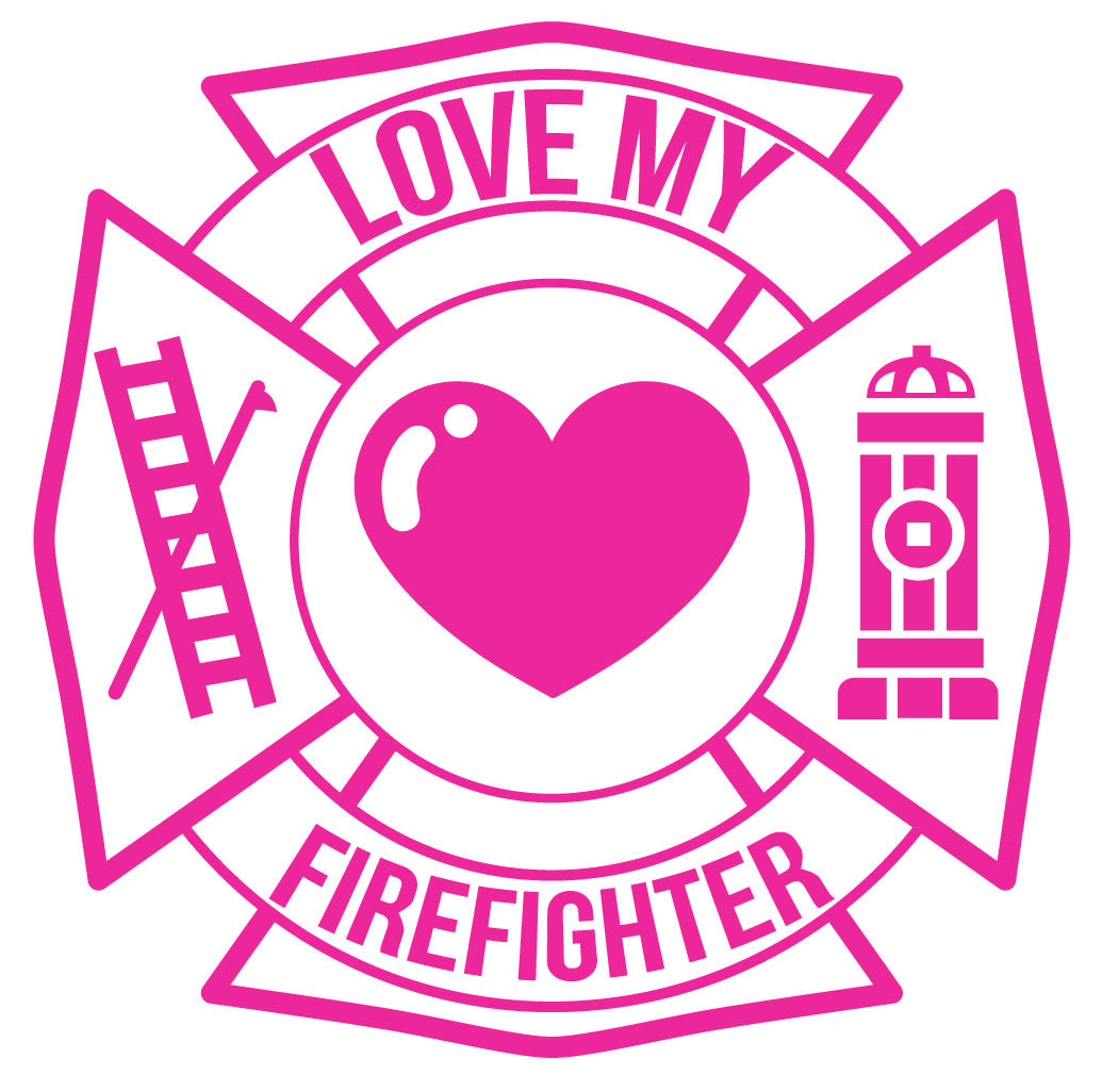 LOVE MY FIREFIGHTER MALTESE CROSS WINDOW DECAL ‐ Pink
