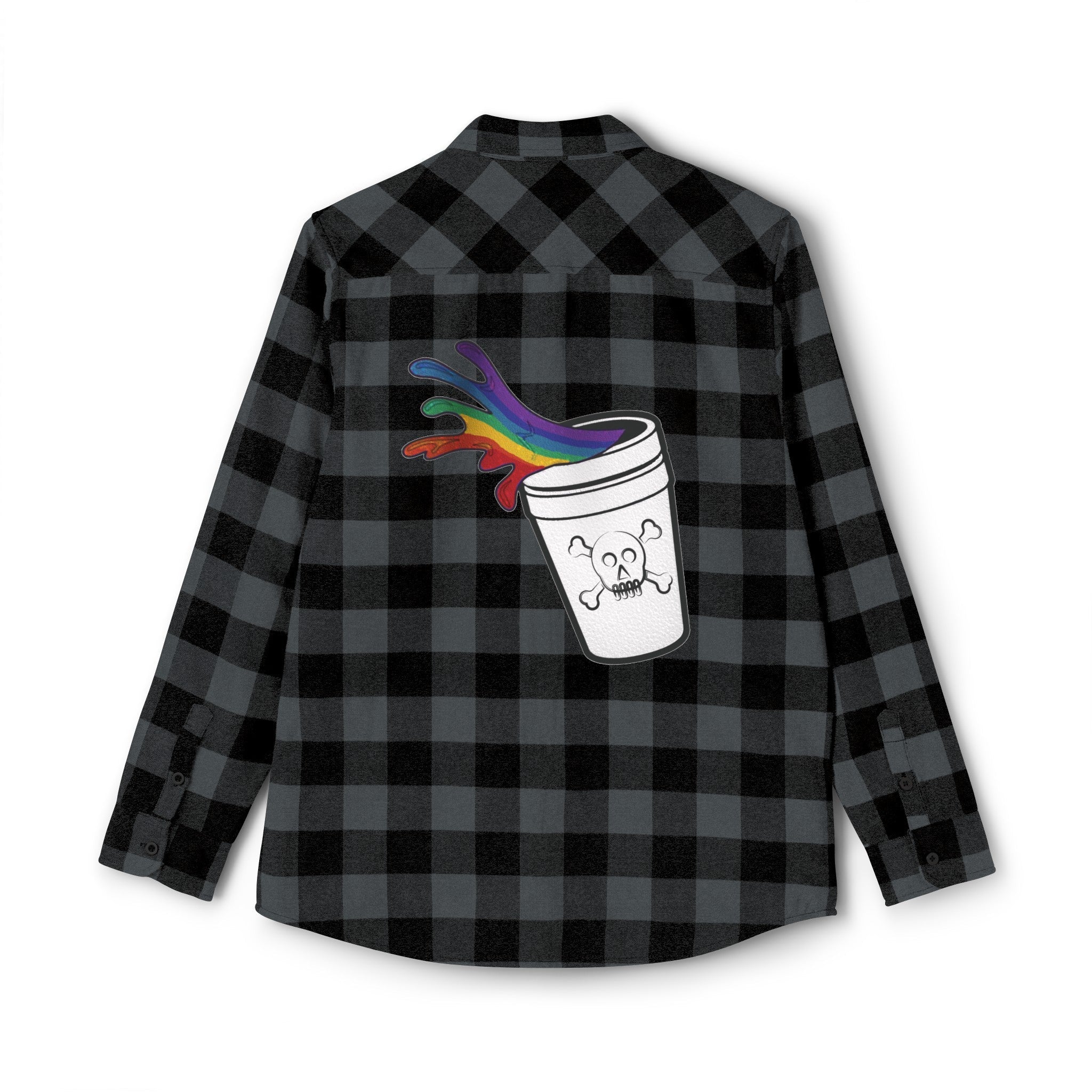 Discover this timeless unisex flannel shirt, tailored with double front pockets and a convenient top flap opening. Complete with original Love Pill Cubist Hand-Painted Print and a little bit of syrup. Crafted from a comfortable 60% cotton and 40% polyester blend, this classic shirt with button closures is perfect for any casual occasion.