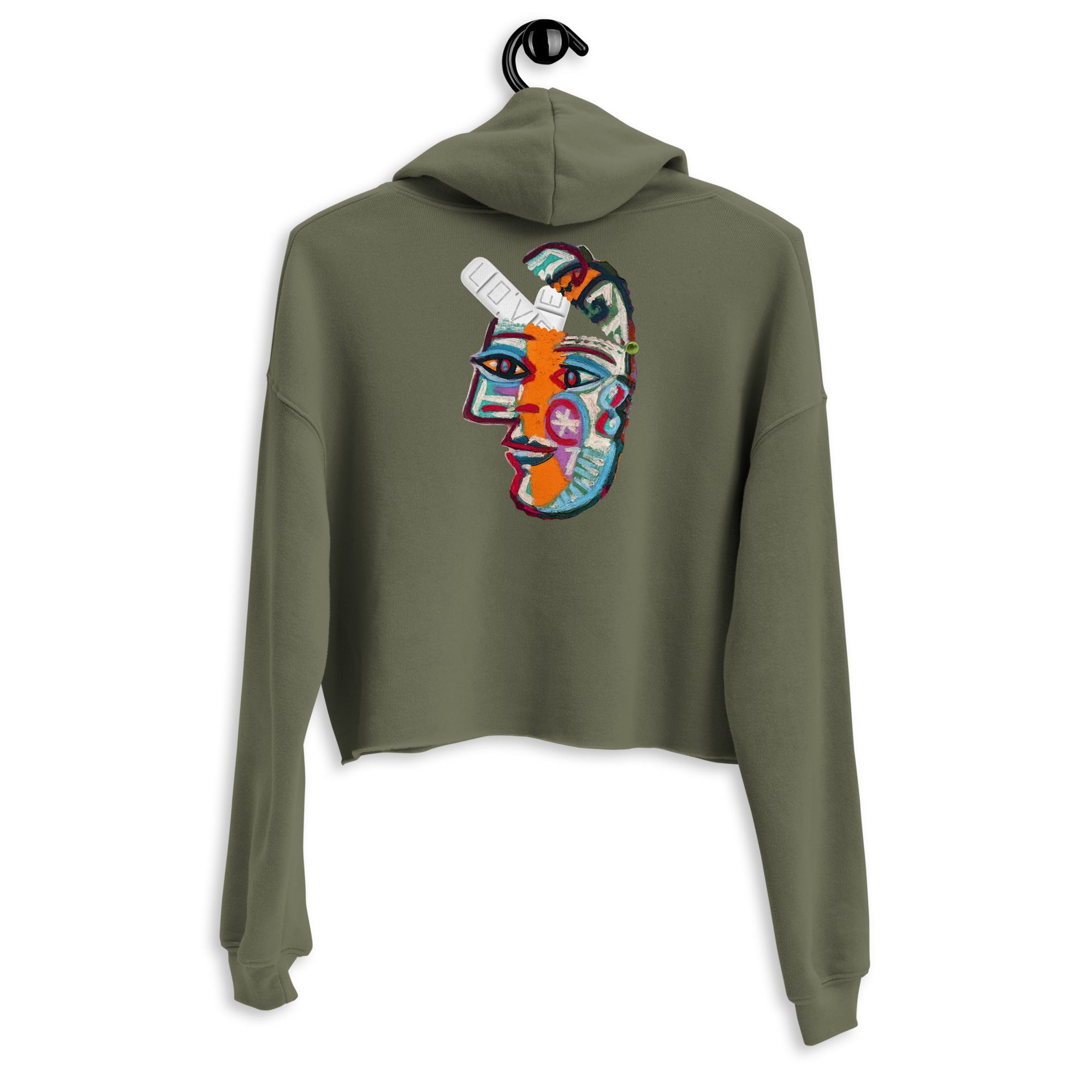 LOVE PILL Crop Hoodie ‐ Military Green / S