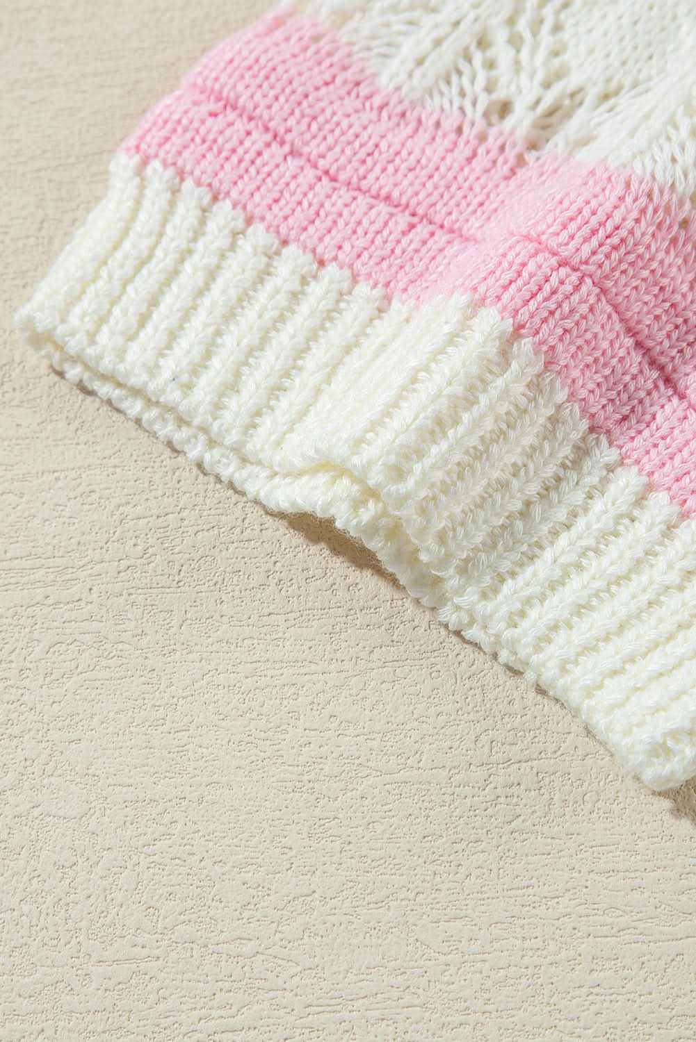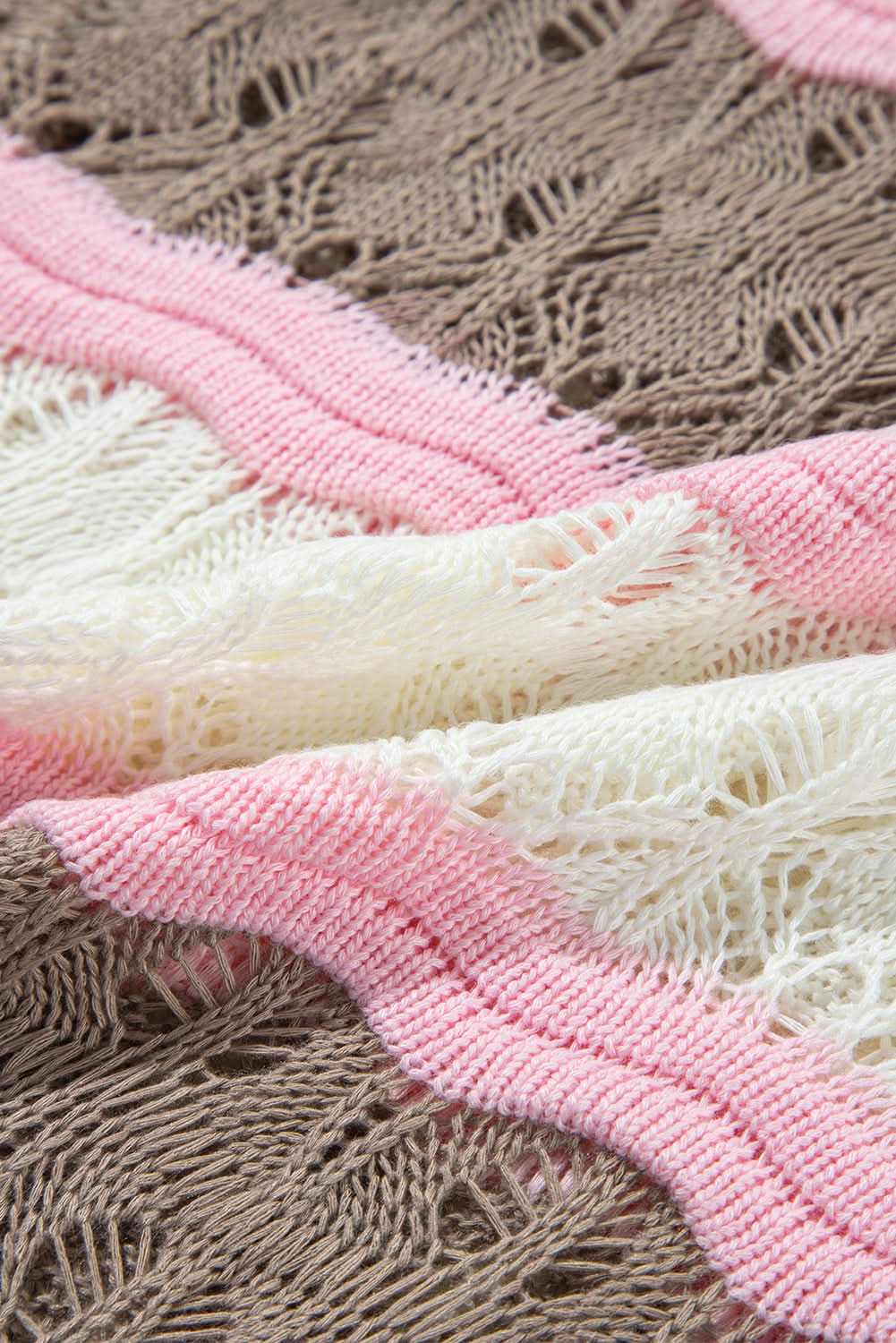 This sweater features a lightweight, breathable acrylic knit with a crochet hollow-out motif. Stripes run horizontally in a refined sequence of brown, blush pink, and ivory, delivering subtle color-block accents that elevate everyday looks. A classic round neckline and a relaxed shift silhouette ensure comfortable wear from morning to evening.