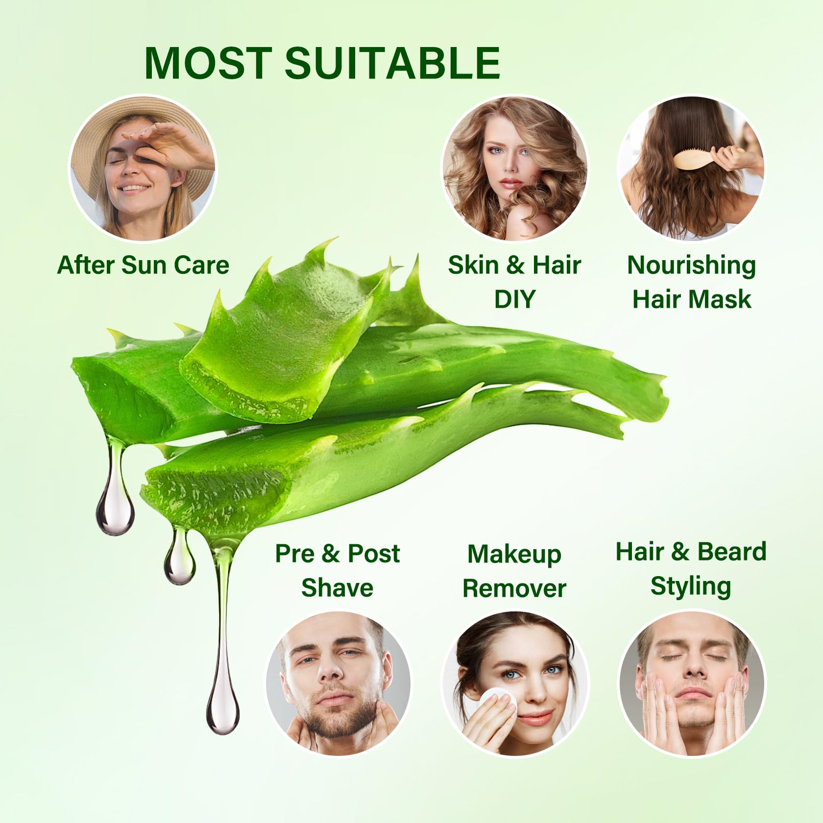 - Moisturizing: Our aloe vera gel is made with fresh aloe vera and is rich in high quality moisturizing ingredients that replenish the skin with moisture, leaving it instantly hydrated and clear, regaining its youthful glow