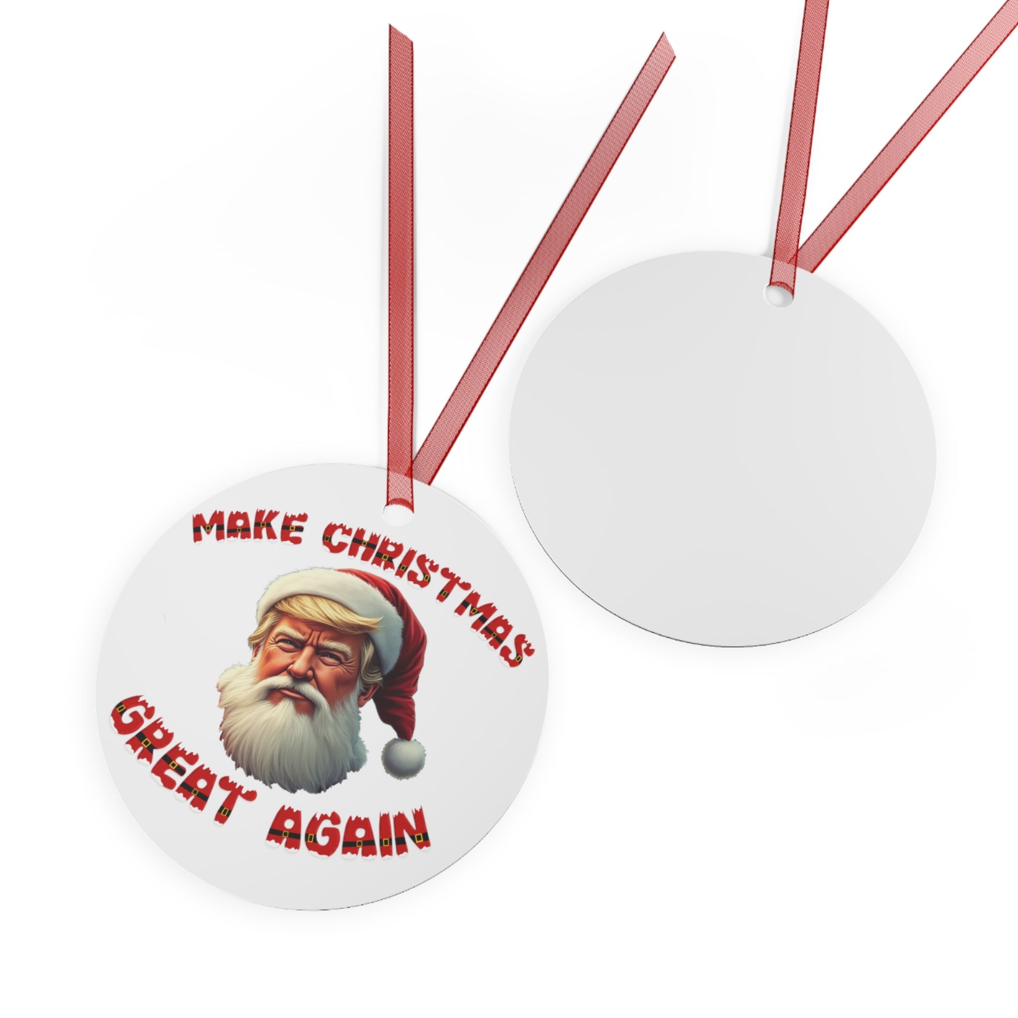 Bring some yuletide cheer and a dash of presidential pizzazz to your holidays with the Make Christmas Great Again Ornament! Featuring the iconic image of Donald Trump as Santa Claus, surrounded by the festive slogan "Make Christmas Great Again," this ornament is the perfect blend of humor, holiday spirit, and a nod to your favorite leader.