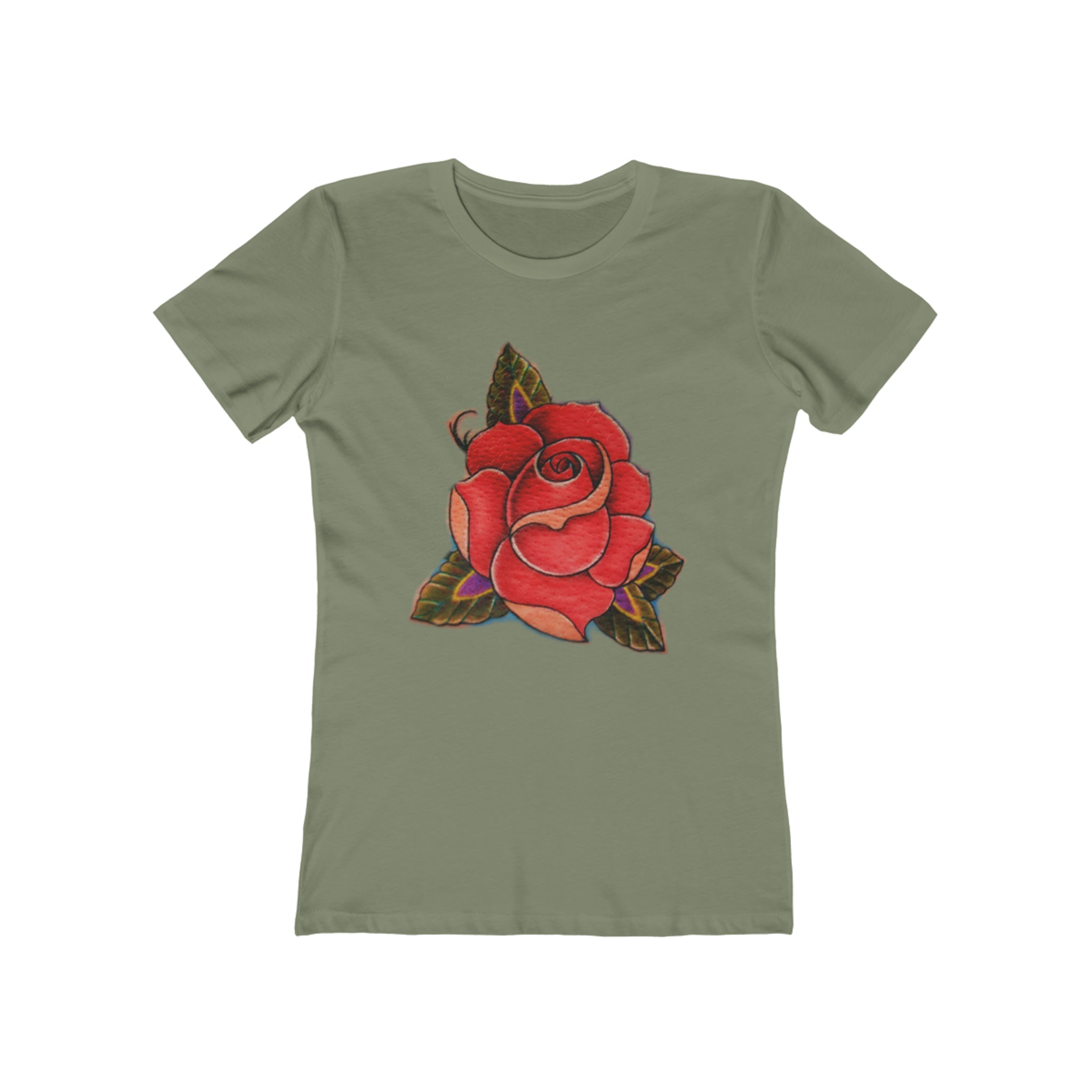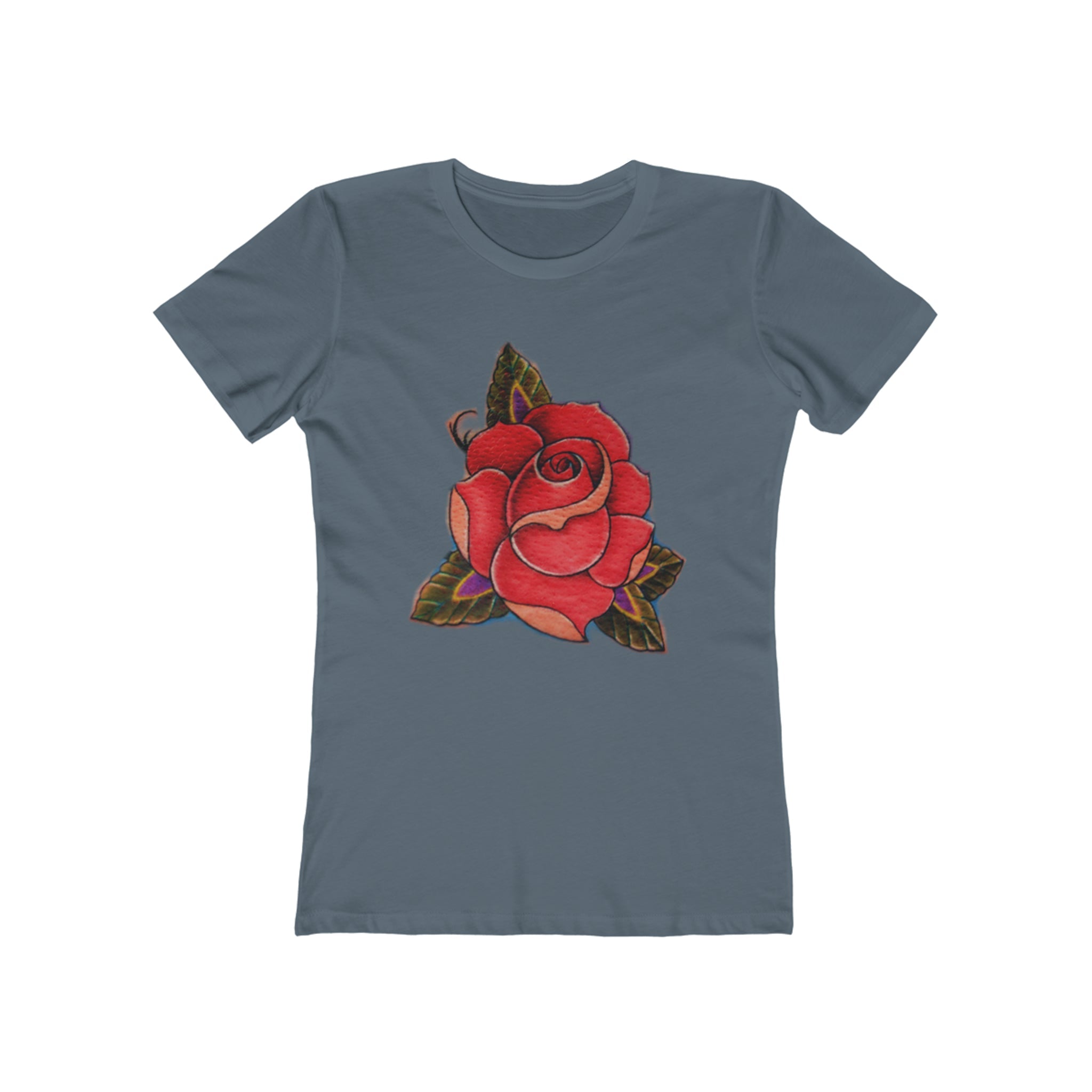This is not a typical low-quality t-shirt. This feminine-cut classic tee provides an upscale casual look. A signature style done exceptionally well, this super-soft premium tee is instantly loved by all who wear it. Topped with a high-res actual Tattoo rose to honor a life.