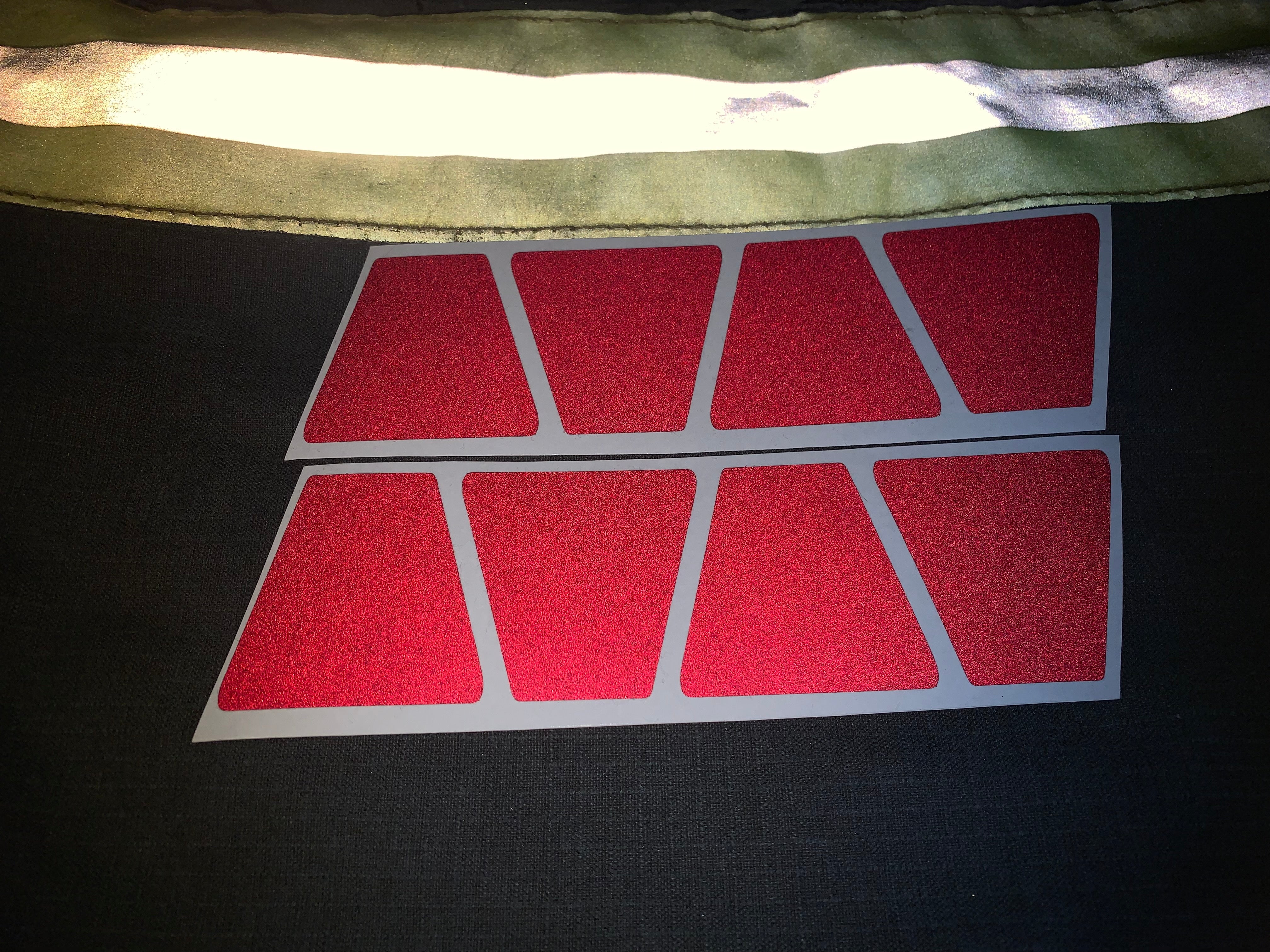 These decals are made of 3M premium reflective vinyl specifically designed for this type of application. Inks used are Eco-friendly
