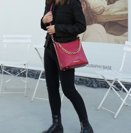 “Maxine” Faux Crocodile-Embossed Shoulder Bag