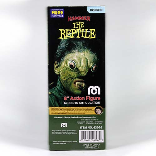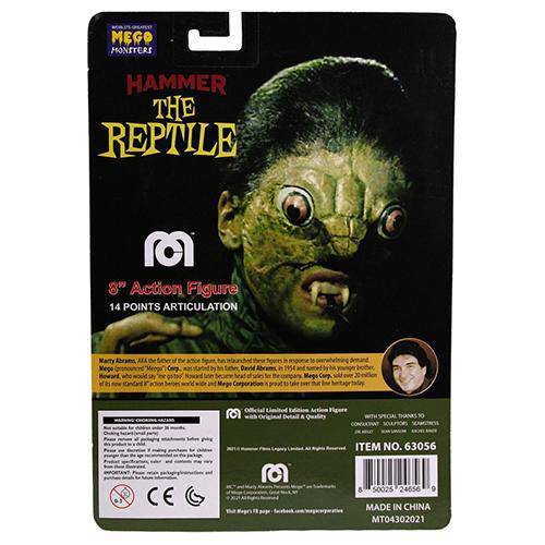Mego is thrilled to present The World’s Greatest Mego Monsters The Reptile 8” action figure - officially licensed from Hammer Horror! The Reptile slithers her way into the Megoverse for the first time ever in the Classic Mego style!