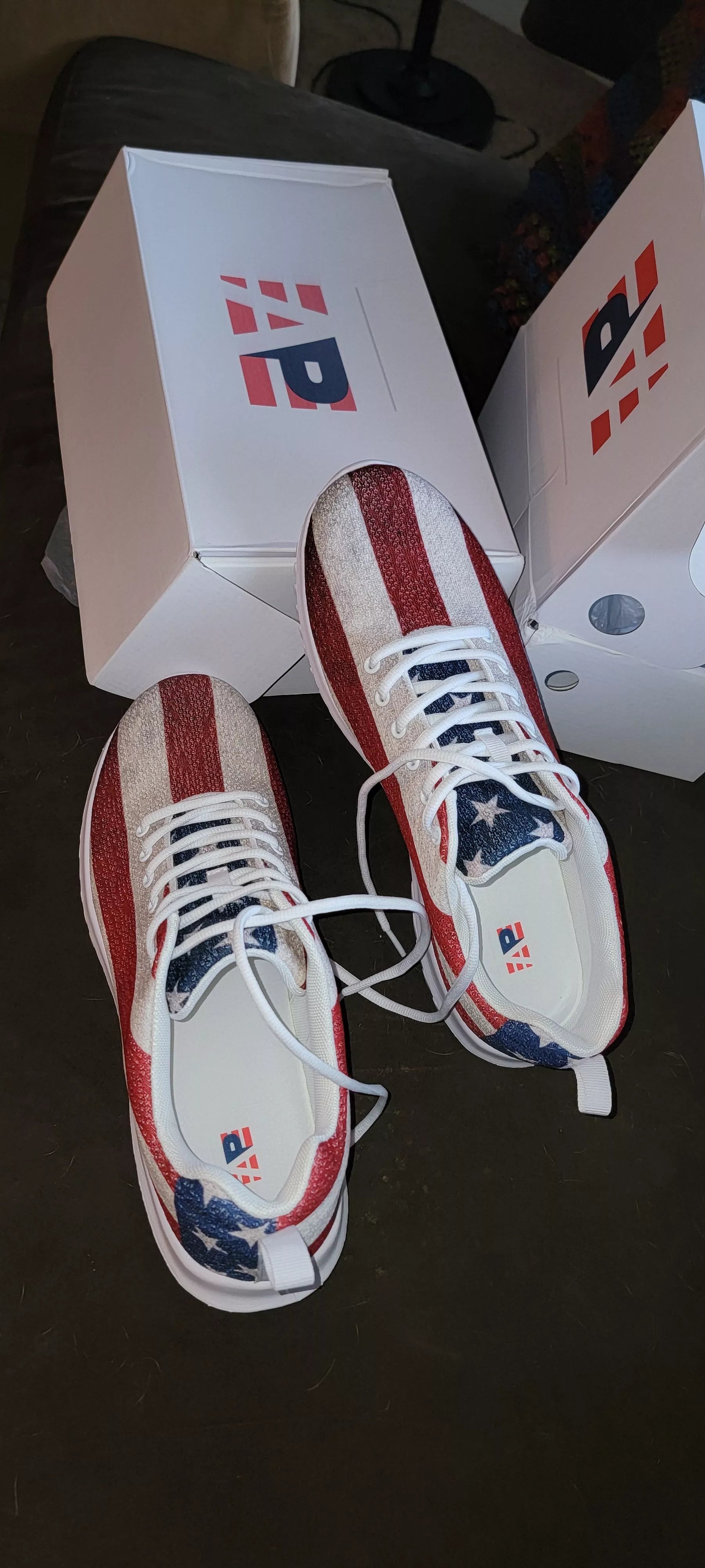 Gentlemen, get ready to salute our latest addition to the shoe game - the most patriotic pair of athletic men's shoes you'll ever see! We're talking about shoes that are so American, they make bald eagles cry tears of joy.
