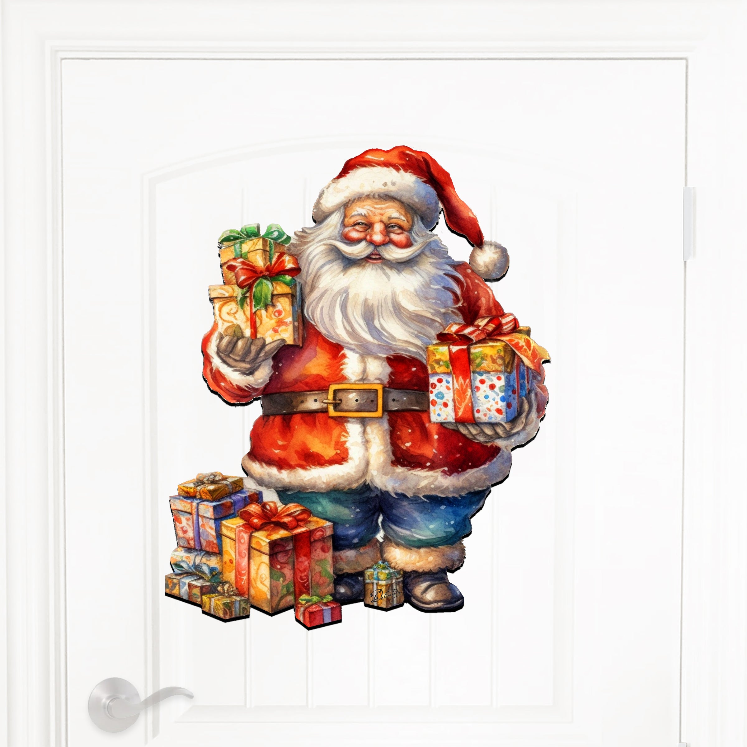 Welcome holiday joy to your door with the Merry Delivery Holiday Door Decor by G. Debrekht. This warm, welcoming wooden decoration features Santa holding gifts, making it the perfect festive statement for your entryway. An eye-catching way to celebrate the season with a traditional touch.
