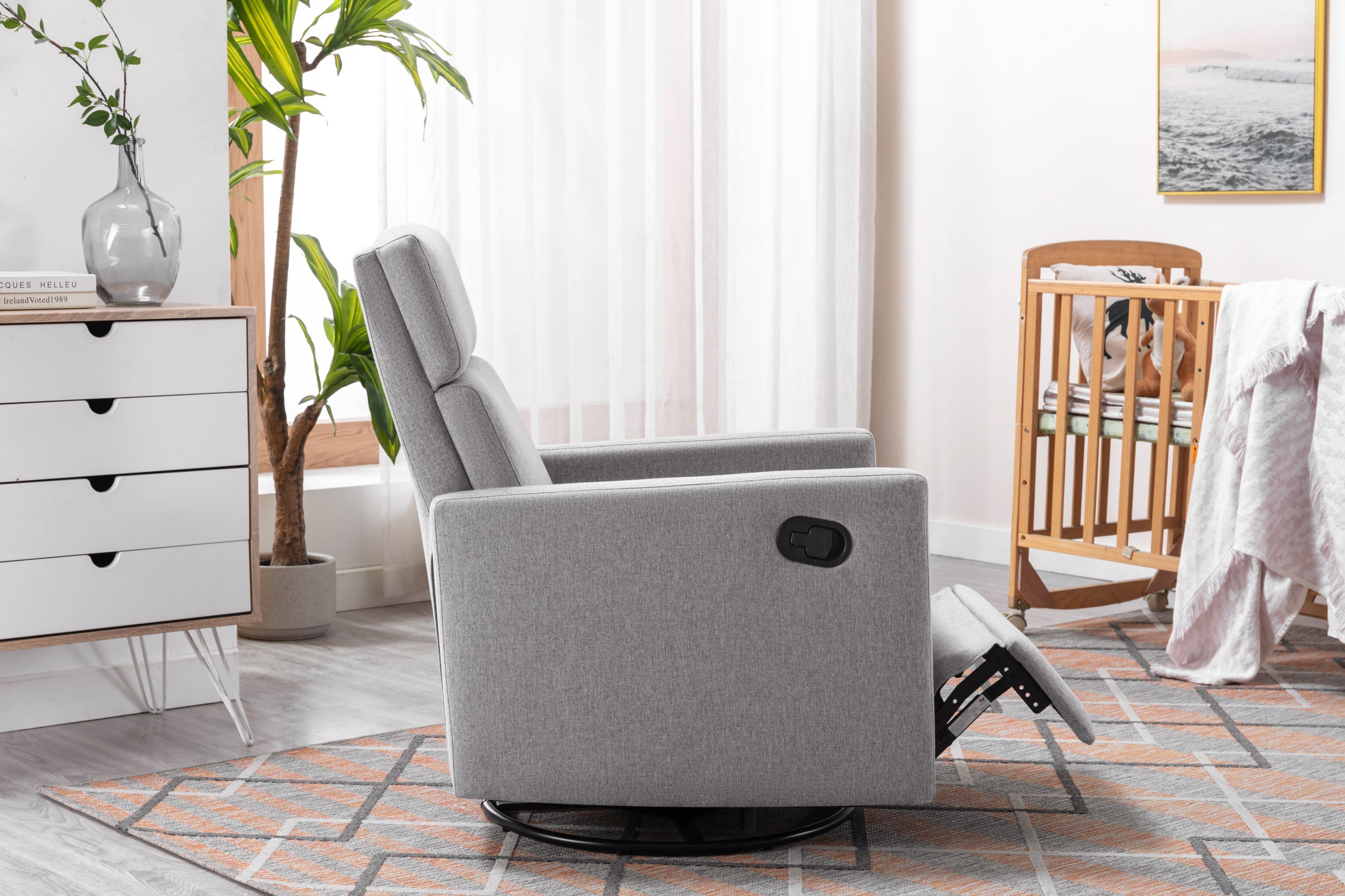 Modern Upholstered Rocker Nursery Chair Plush Seating Glider Swivel Recliner Chair, Gray Linen ‐ Default
