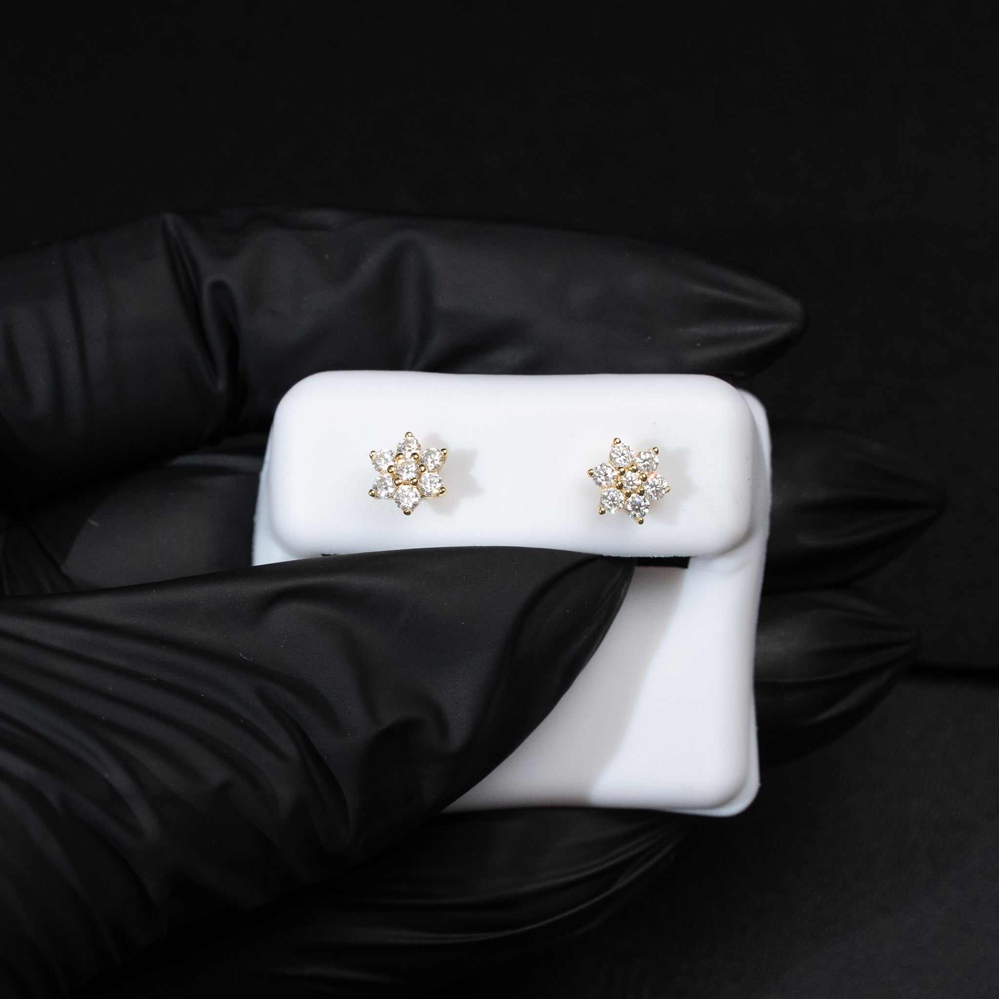 Moissanite 0.5ct Flower Stud Earrings 925 Sterling Silver Screw Back ‐ Gold