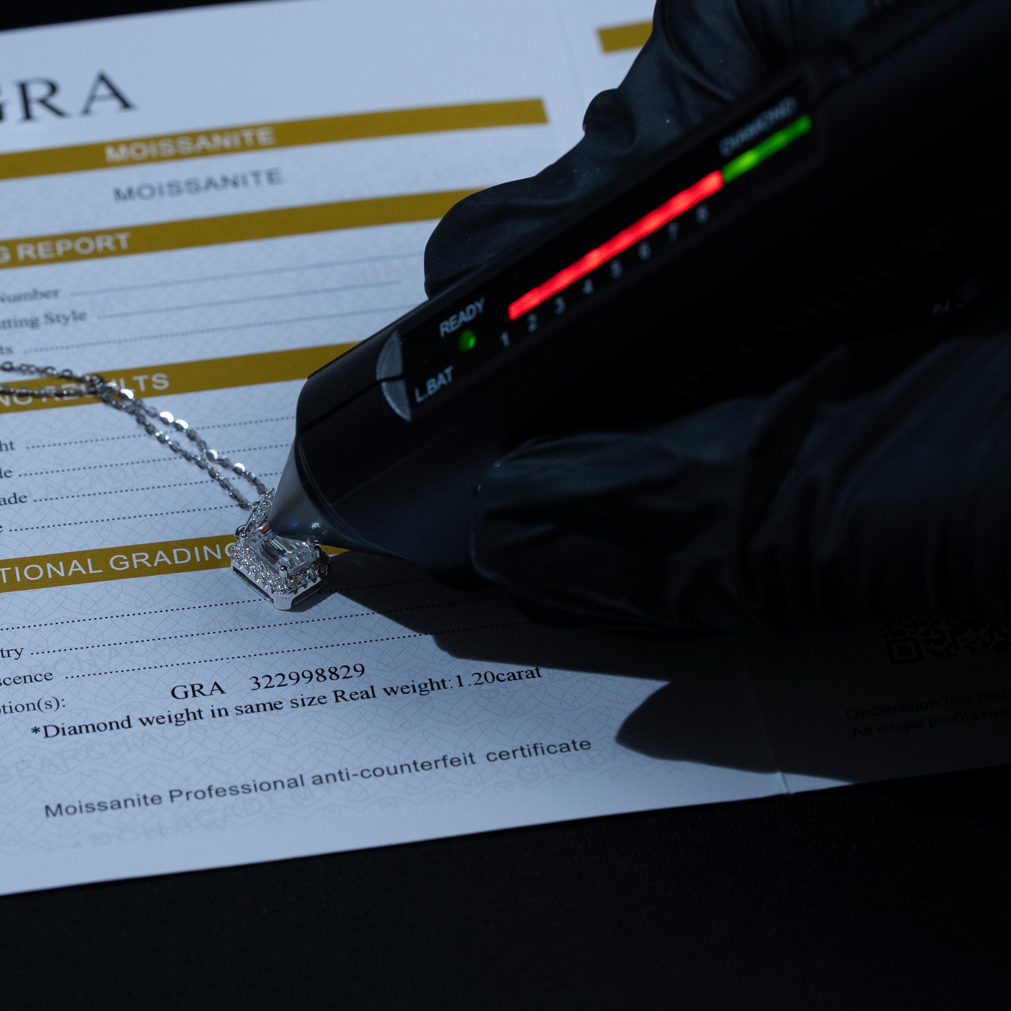 - Total Carat Weight: 1.2 carat moissanite (VVS1, D color)