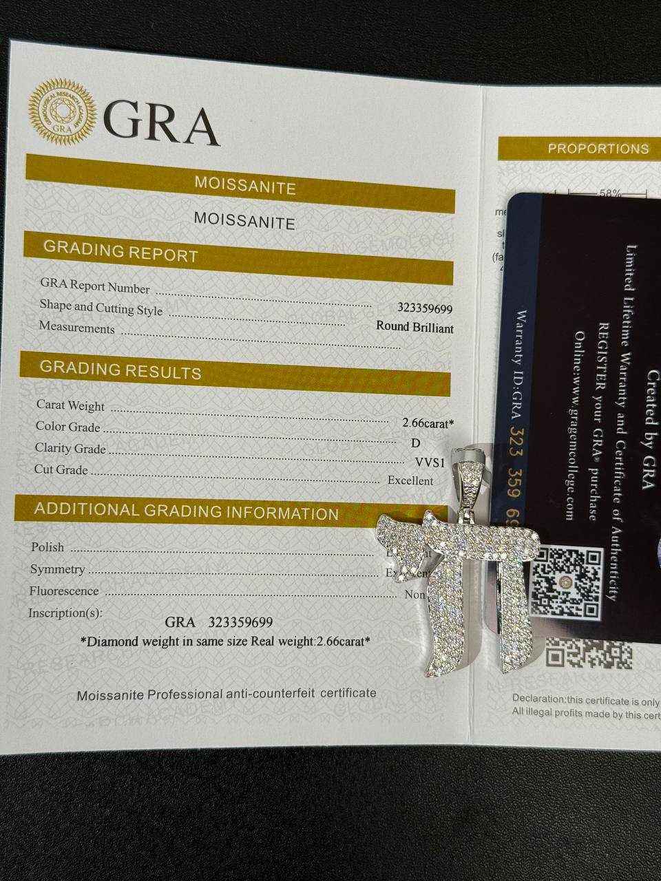 Set with premium VVS1 clarity, D color moissanite stones totaling 2.66 carats, the pendant delivers exceptional brilliance and fire. Each piece is carefully handmade, reflecting a commitment to quality and fine craftsmanship.