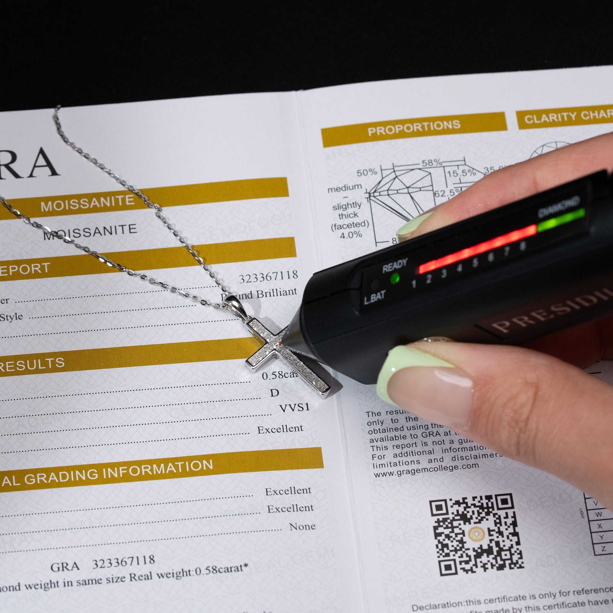 Moissanite Cross Princess Cut Necklace for Women – 925 Sterling Silver