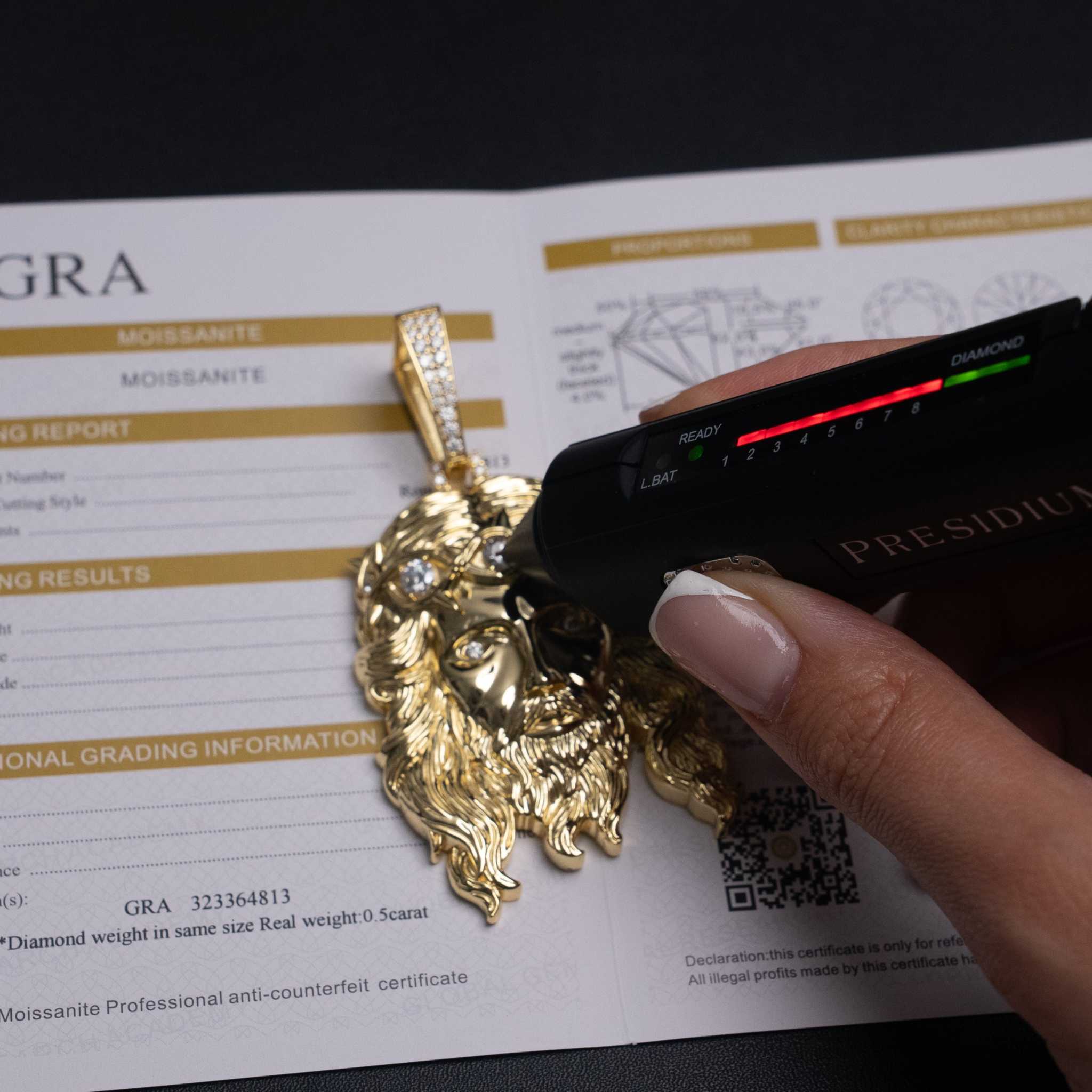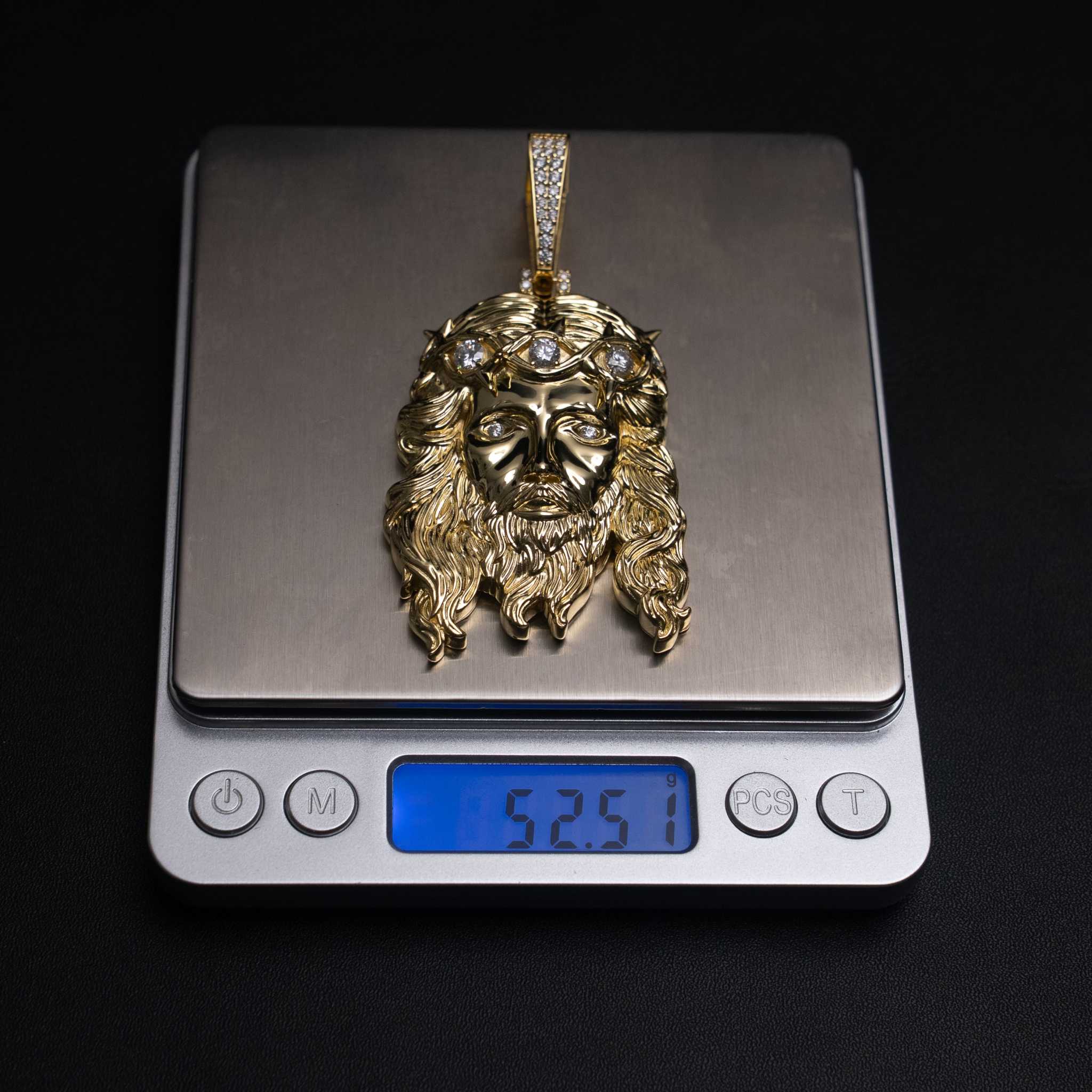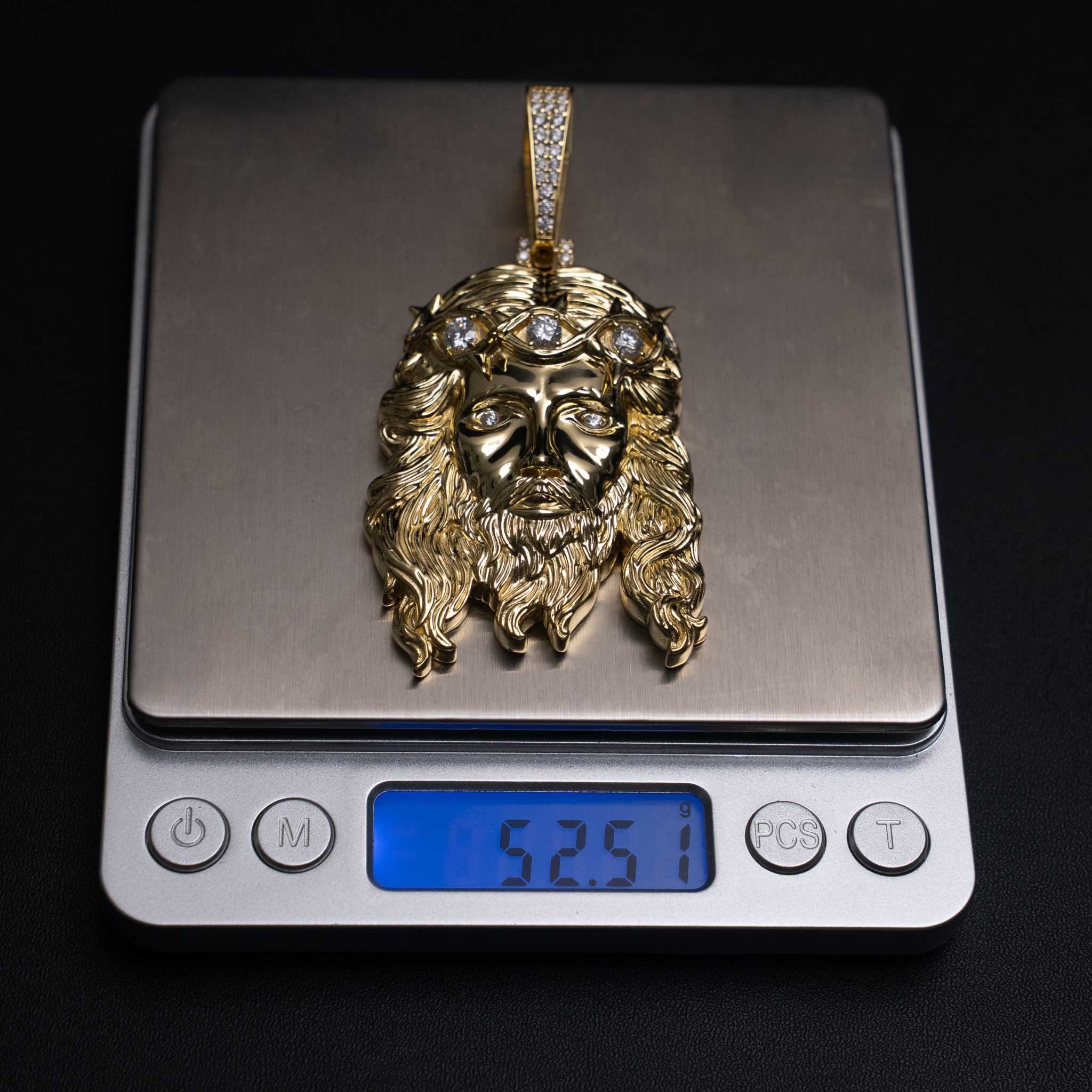 Moissanite Jesus Piece Head Pendant 14K Gold Plated Solid 925 Sterling Silver ‐ Large 2.5"
